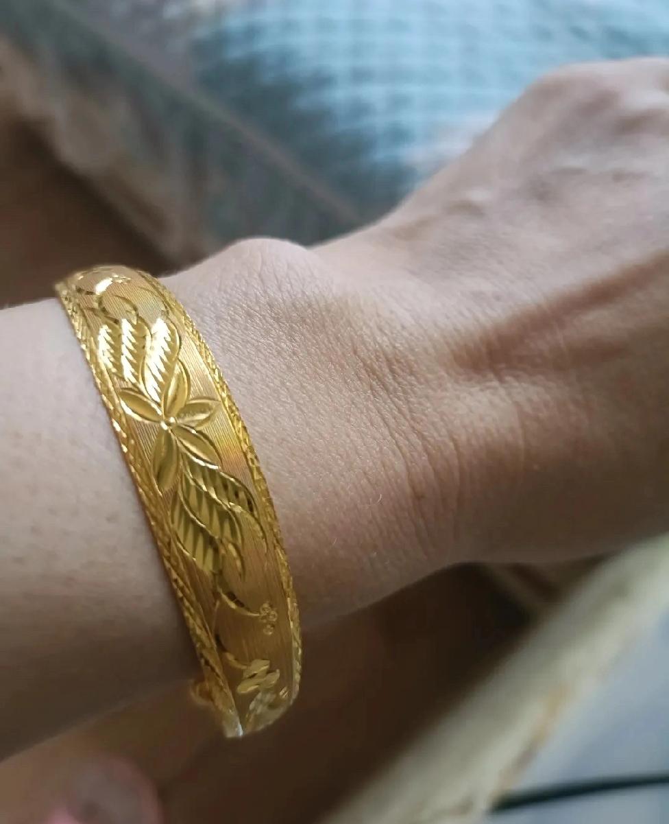 今天早上下楼戴了个旧金镯, 结果一出门 老公就拦着不让走。 他说现在小偷多,老款