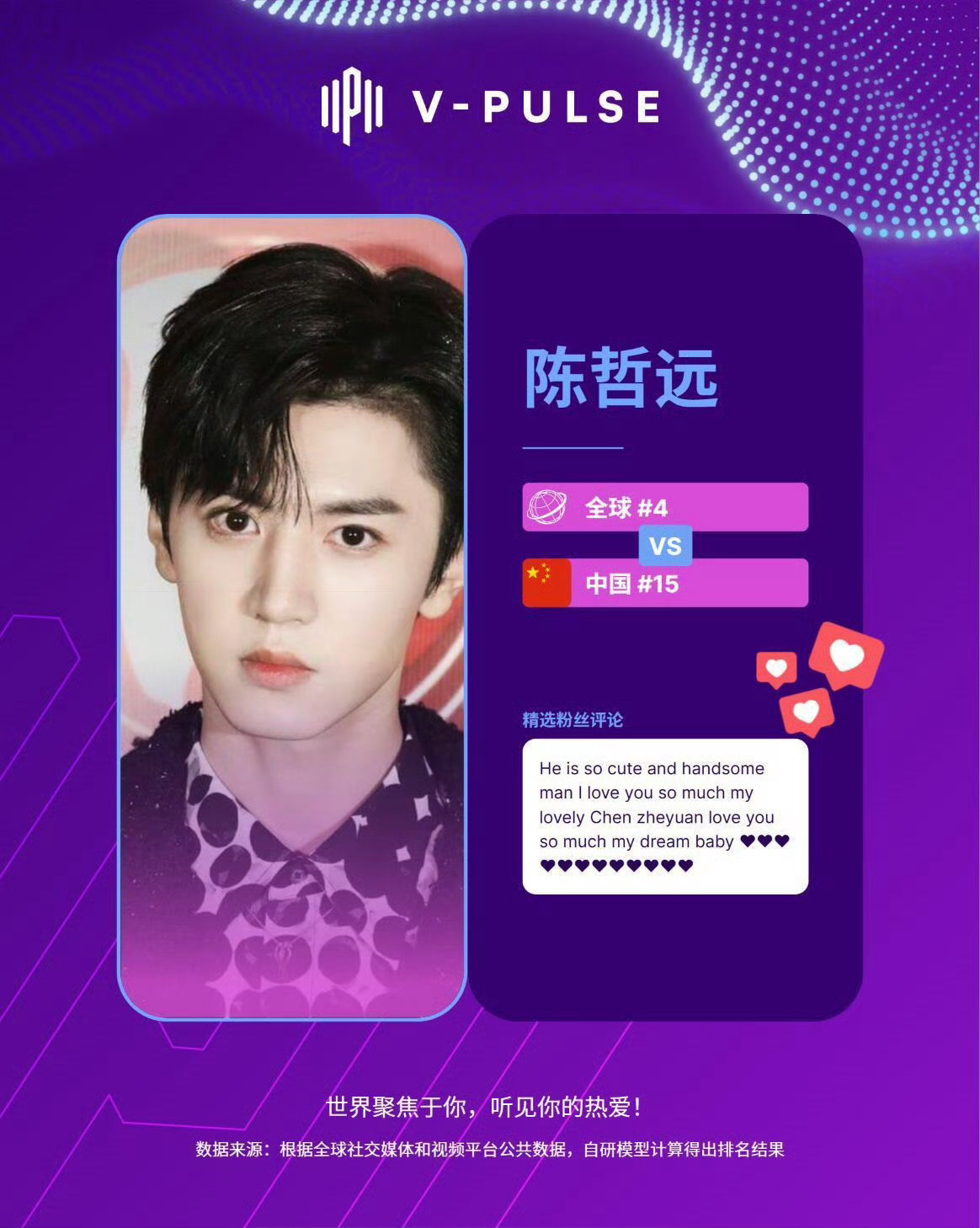 看到《一笑随歌》在海外也这么受欢迎,真的好开心!陈哲远艺人全球热度第四!陈哲远一