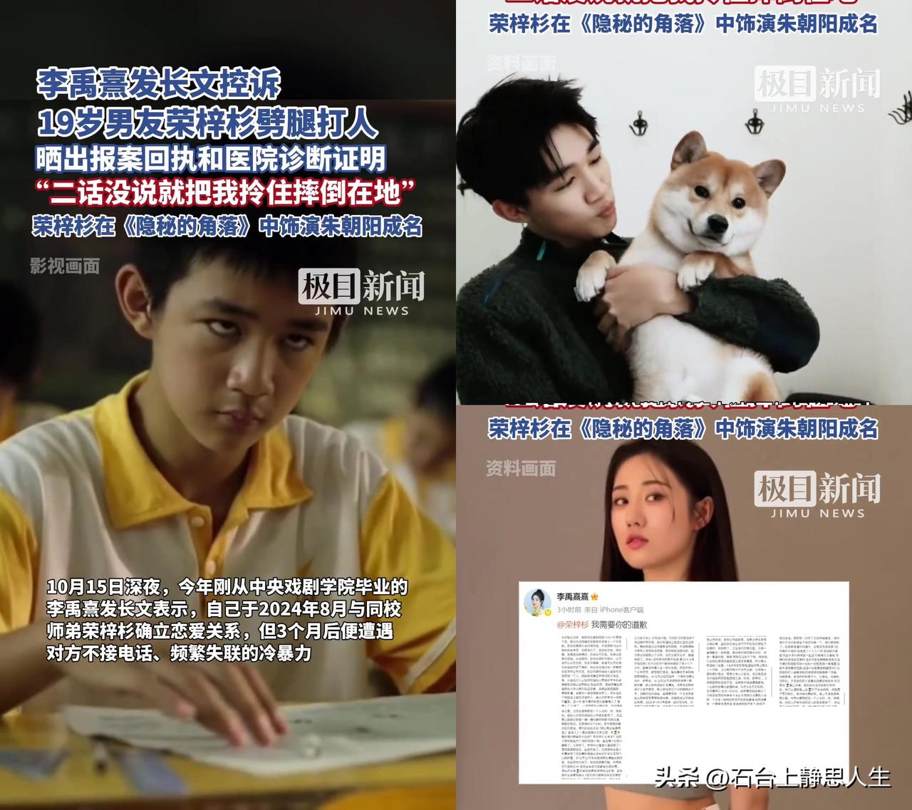 谁能想到当年《隐秘的角落》里阴鸷的朱朝阳,19岁居然动手打女朋友? 荣梓杉被女友李禹熹晒了报案回执和抑郁诊断书,二话没说就把我拎住摔倒在地,劈腿加冷暴力,实锤摆这儿了! 咱先不掰扯时间线,打人有派出所章、抑郁有医院证明,这能是小作文? 我19岁连跟喜欢的人说话都红脸,他倒好,19岁就玩劈腿又动手? 14岁就靠朱朝阳火成国民童星,要是没人教他“红了也得守底线”,能不飘得没边儿? 当年追《隐秘的角落》的你,是觉得他“本色出演”,还是替当年的“朱朝阳”可惜? 大家怎么看?