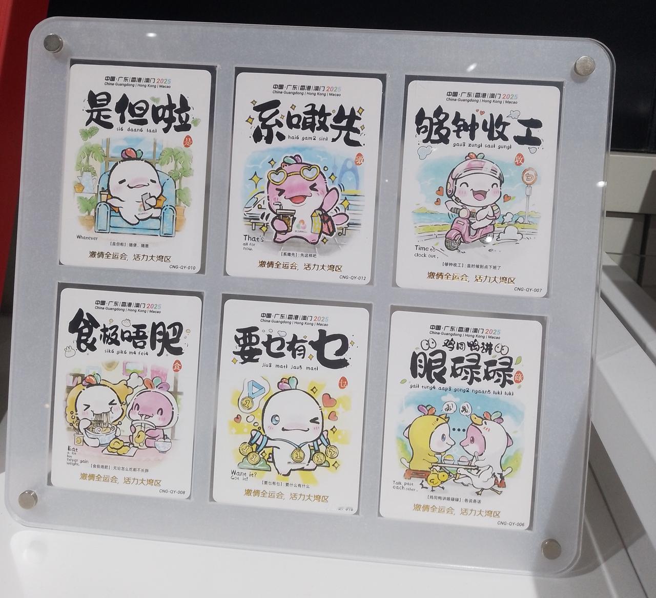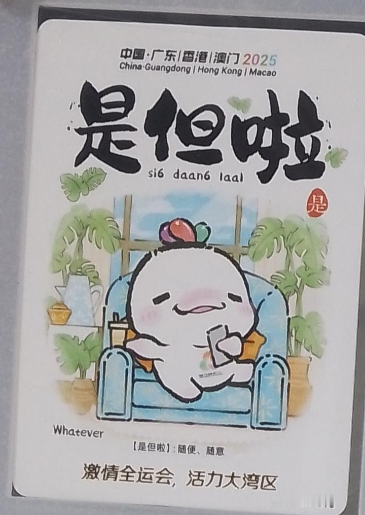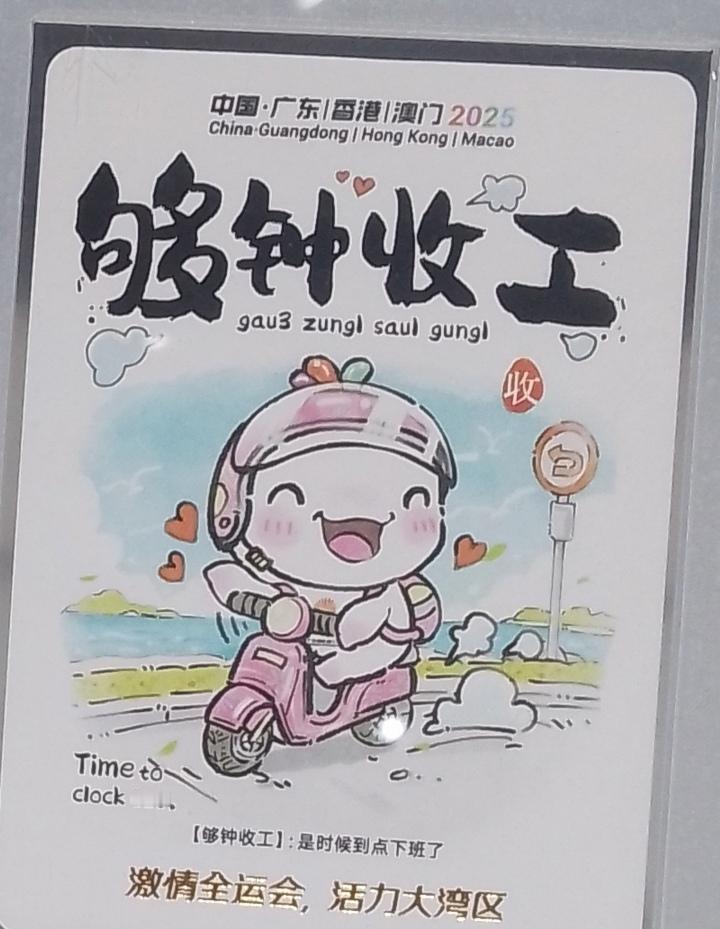 昨天晚上去广州天河区佳兆业里面的全运会特许店买了两套卡,里面有粤语的,可以买卡学习粤语了,今天我把卡片的粤语转换成普通话,看看对不对?第一个图相当于普通话的就这样吧,第二个图相当于随便吧,第三个图很棒,第四个图,打工的人最喜欢,够钟收工,就是到时间下班了。大家可以买卡学习粤语了