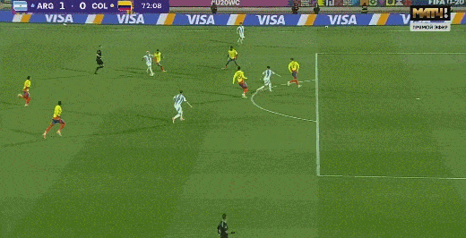 72’普雷斯蒂安尼直塞,西尔维蒂外脚背破门得分,阿根廷1-0哥伦比亚