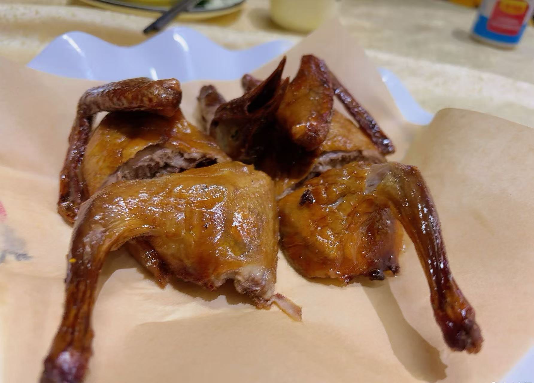 3️⃣.烤乳鸽,基本是每桌必点,乳鸽烤制得皮脆,外形琥珀色,外酥里嫩。