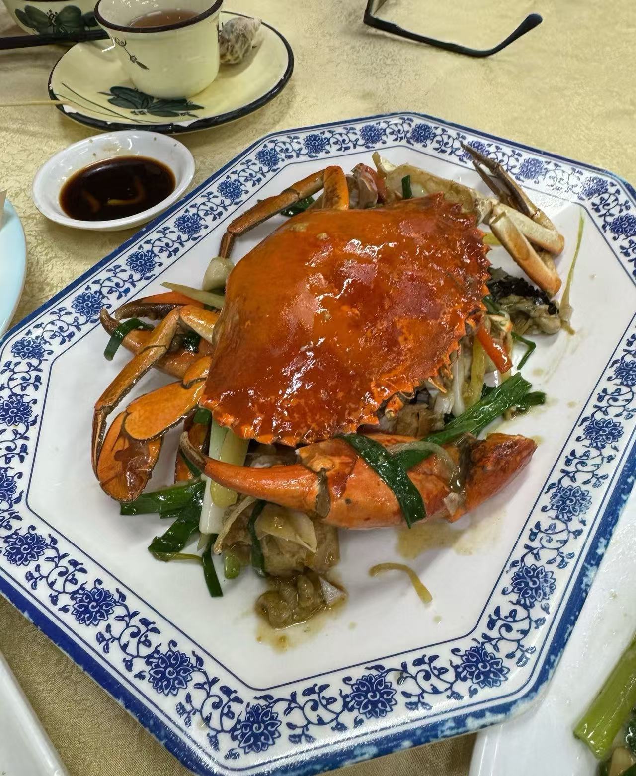 2️⃣.姜葱炒花蟹,膏肥肉厚的大膏蟹搭配姜葱爆炒,蟹肉紧实,咸香味浓。