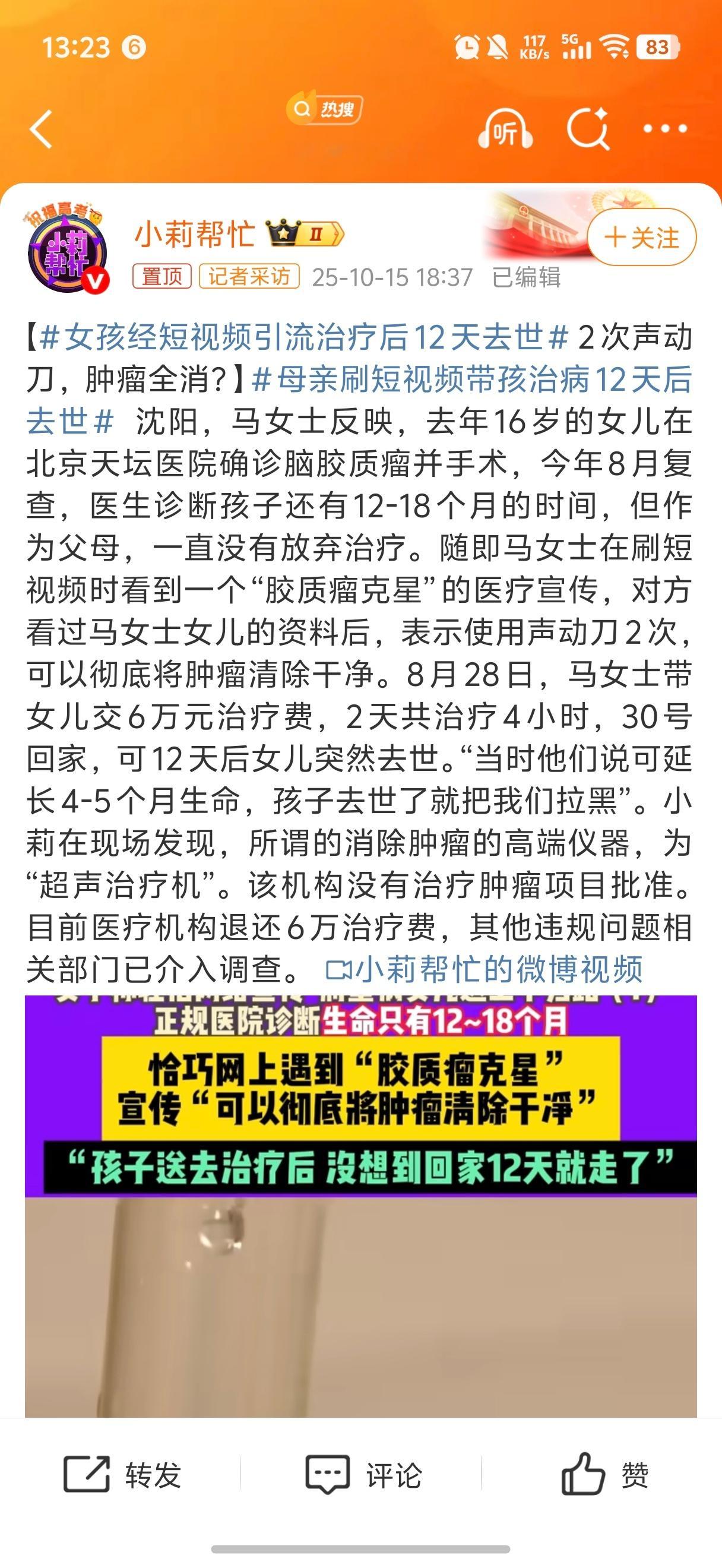 女孩经短视频引流治疗后12天去世母亲没错,母亲想抓住一点希望救自己的孩子,有什么错?