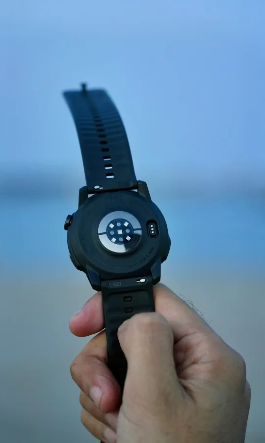 标配表带从之前的织物,改成了带导汗槽的硅胶表带,内凹弧面减少和皮肤的接触,流汗后也不会不舒服(不过我个人还是比较喜欢织物的表带会更贴合而且方便)