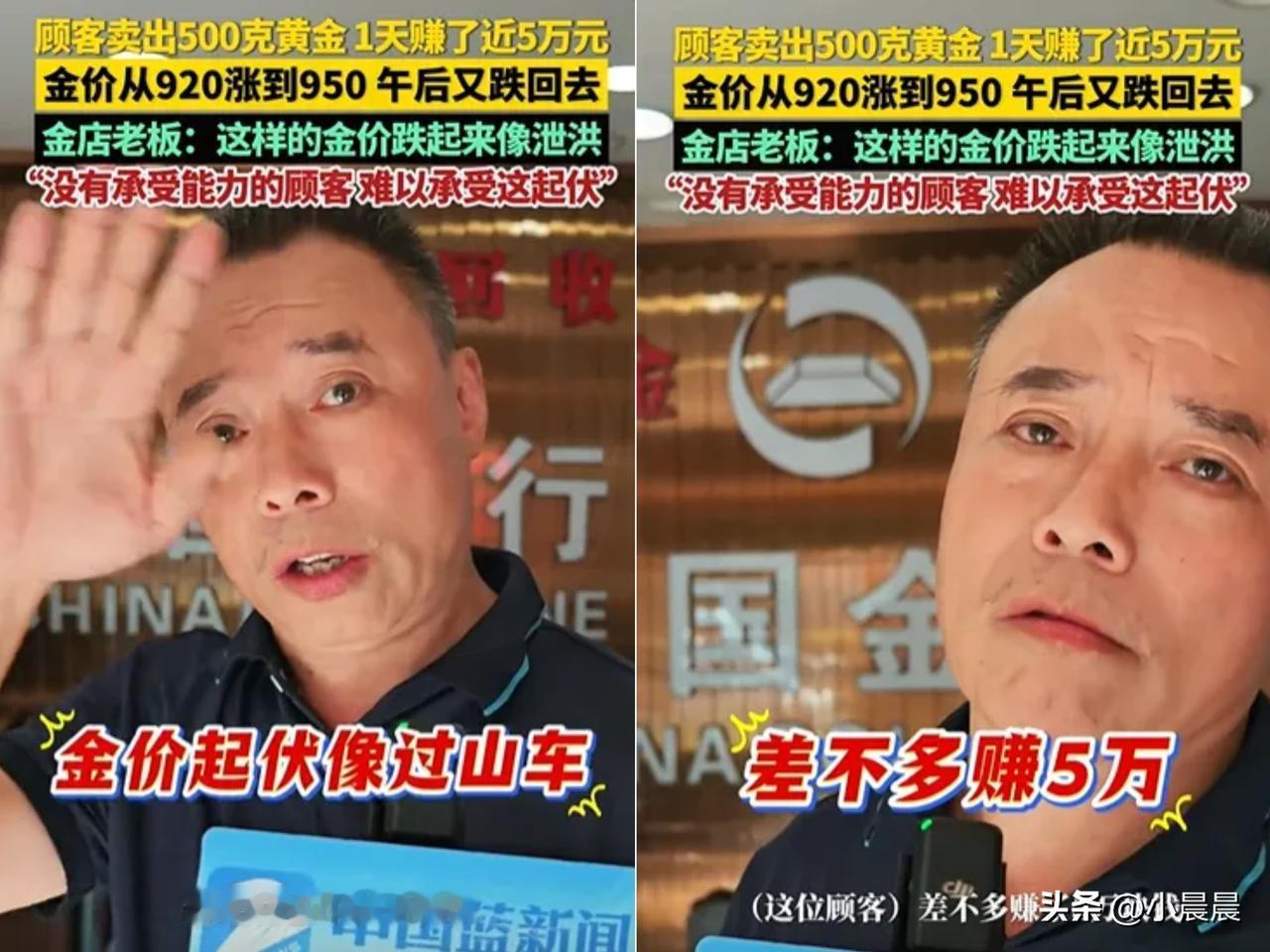杭州大哥500克黄金躺赚5万? 别光盯着这运气, 背后的坑比你想的深多了!前几天 刷到这事儿,评论区全在喊羡慕,说抵得上大半年工资。 可你们没看见金店老板说的,金价上午920、中午窜到950、下午直接泄洪回920,这波动比过山车还刺激。 之前有个老顾客跟风买200克,刚入手就跌,天天来问“涨了没”,最后亏2000多割肉,临走说再也不碰。 说白了,这大哥能赚钱纯纯踩对了点,跟赌大小没区别。 金价受国际形势、美元走势影响,这些哪是普通人能算准的? 有人贪心等更高价,结果砸手里,卖了心疼、拿着心慌,天天跟热锅上的蚂蚁似的。 真别觉得这钱好赚,人永远赚不到认知以外的钱。黄金是用来长期保值的,不是让你短期炒的。 每年买100克存着应对风险,比天天盯盘盼暴富靠谱多了。 你身边有没有人跟风炒金亏过钱? 要是你遇到这种一天涨30块的情况,会立马出手还是再等等?