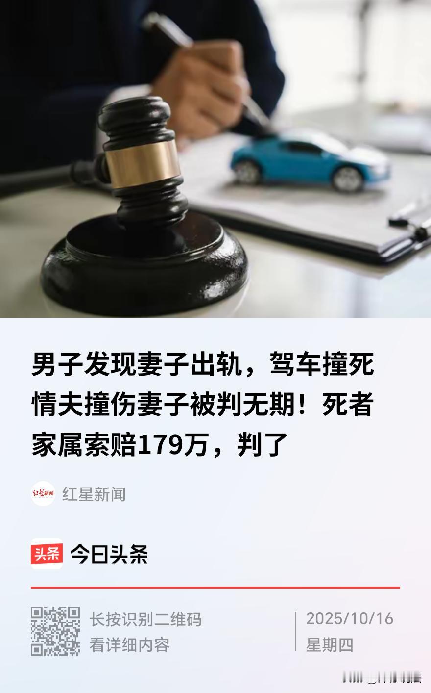 浙江瑞安,一男子婚后怀疑妻子出 轨,深夜驾车尾随,在偏僻村道上,亲眼目睹妻子与老乡相伴而行。不料,男子愤怒占据理性,猛踩油门,驾车狠狠撞向二人。二人倒地后,男子仍未停手,他抄起车上的铁撬棍,对着二人疯狂殴打。结果,老乡因头部重创不治身亡,妻子也身受轻伤。事后,男子因故意杀人罪被判处无期徒刑,而老乡的家属还提起了民事诉讼,索要179万元高额赔偿,但法院判决仅支持15.5万余元。 据悉,田大勇(化名)和陈小芳(化名)是一对普通的夫妻,两人结婚多年,日子过得平淡却也算温馨。 然而,从2024年初开始,他们的婚姻出现了裂痕,夫妻俩经常因琐事争吵,感情逐渐冷淡。 陈小芳认识了一位老乡吴明(化名),未婚且无亲无故,只有一个弟弟吴小强(化名)。 随着时间的推移,陈小芳和吴明的关系越过了界限,发展成了不正当的男女关系。 田大勇原本就敏感多疑,他开始注意到妻子的异常,晚归、手机加密、言语闪烁。 田大勇决定跟踪妻子,想弄清楚真相。 2024年8月28日晚上,田大勇开着他的汽车,悄悄守候在某村的平安大道南路。这是一条相对偏僻的道路,两旁停着一些车辆,夜色深沉,只有零星的路灯照亮。 田大勇的车里放着一根铁撬棍,他平时工作用的工具。 他等了几个小时,直到8月29日凌晨1点左右,陈小芳和吴明出现了,他们步行经过,可能刚结束一场约会,完全没有察觉到危险。 田大勇看到这一幕,再也控制不住自己,他猛地踩下油门,驾车直接冲向两人,陈小芳和吴明被撞倒在地。 田大勇没有停下,他下车后,拿起铁撬棍,疯狂地殴打两人。 现场一片混乱,吴明头部遭受重击,陈小芳也受了伤,路边停着的三辆无辜车辆也被撞坏,后来估价损失共计12341元。 经鉴定,吴明因严重颅脑损伤,在当天送医抢救无效死亡。陈小芳虽幸免于难,但受了轻伤一级。 田大勇在行凶后,似乎清醒了一些,他用路人的手机在1点24分报警,并留在现场等候警察。 很快,警方赶到,将他带走。 随后,案件进入司法程序后,田大勇被指控犯有故意杀人罪。 在庭审中,法院查明了几个关键事实:首先,田大勇的行为是预谋的,他提前守候并准备了工具,他直接导致了吴明的死亡和陈小芳的受伤; 其次,田大勇有自首情节,案发后主动报警并等候逮捕,这依法可以从轻处罚。 此外,田大勇的家属在审理期间向法院自愿缴纳了10万元作为赔偿款,显示出一定的悔意。 但法院也注意到,受害者一方存在过错。陈小芳和吴明的不正当关系,是引发本案的直接原因。 根据刑法规定,如果被害人有过错,可以在量刑时酌情从轻。 综合考虑后,法院认为田大勇的罪行严重,但鉴于自首、部分赔偿和被害人过错,最终判处他无期徒刑,剥夺政治权利终身。随案移送的铁撬棍也被没收。 刑事判决后,故事并未结束,吴明的弟弟吴小强作为唯一亲属,将田大勇告上法庭,提起民事诉讼,索赔179万余元。 那么,法院会如何判决呢? 《刑事诉讼法司法解释》第一百七十五条规定,被害人因人身权利受到犯罪侵犯或者财物被犯罪分子毁坏而遭受物质损失的,有权在刑事诉讼过程中提起附带民事诉讼;被害人死亡或者丧失行为能力的,其法定代理人、近亲属有权提起附带民事诉讼。 因受到犯罪侵犯,提起附带民事诉讼或者单独提起民事诉讼要求赔偿精神损失的,人民法院一般不予受理。 法院认为,本案系因被告人田大勇的故意杀人犯罪行为引发的生命权纠纷,吴小强作为被害人吴明唯一的法定继承人,有权向人民法院提起民事诉讼,要求侵权人承担赔偿责任。 不过,对于犯罪行为造成的人身损害,刑事责任的承担本身即是对被害人及其亲属一种精神上的抚慰与昭示。若在刑事处罚之外,再普遍支持高额的精神损害赔偿等,可能构成对被告人的双重惩罚。 所以,在刑事犯罪引发的民事赔偿中,法律对赔偿范围作了特殊限定,以直接的物质损失为原则。 在庭审中,法院核定了吴小强的合理损失,吴明送医抢救的医疗费以及处理后事的丧葬费,共计155985.01元。这些费用属于实际发生的费用,属于直接损失,依法应予支持。 然而,对于吴小强主张的死亡赔偿金1499940元和精神损害抚慰金100000元。 法院认为,田大勇虽是驾驶机动车撞击,但其行为被定性为故意杀人,而非交通肇事罪,不适用《道路交通安全法》,无法据此支持死亡赔偿金。 在刑事犯罪导致死亡的案件中,死亡赔偿金不属于“物质损失”的范畴,依法不予支持。 此外,吴小强要求的亲属办理丧葬事宜的交通费、住宿费和误工损失40000元。 法院认为这些不属于法定赔偿项目,没有法律依据,因此不予支持。 最终,法院判决田大勇赔付吴小强155985.01元。 对此,您怎么看?