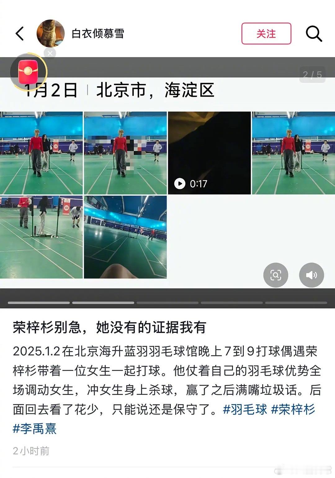 1月2日李禹熹、荣梓杉一起打羽毛球