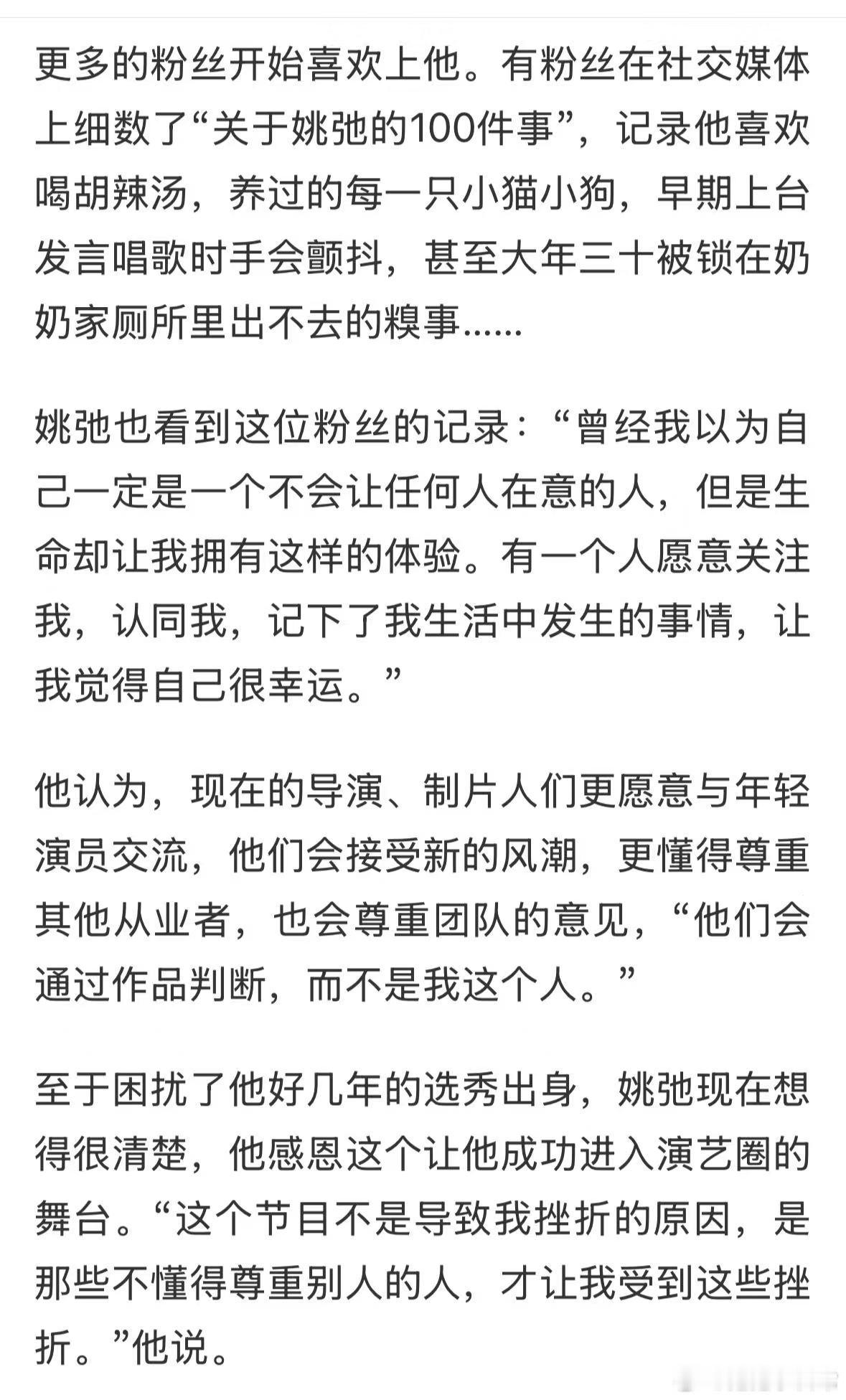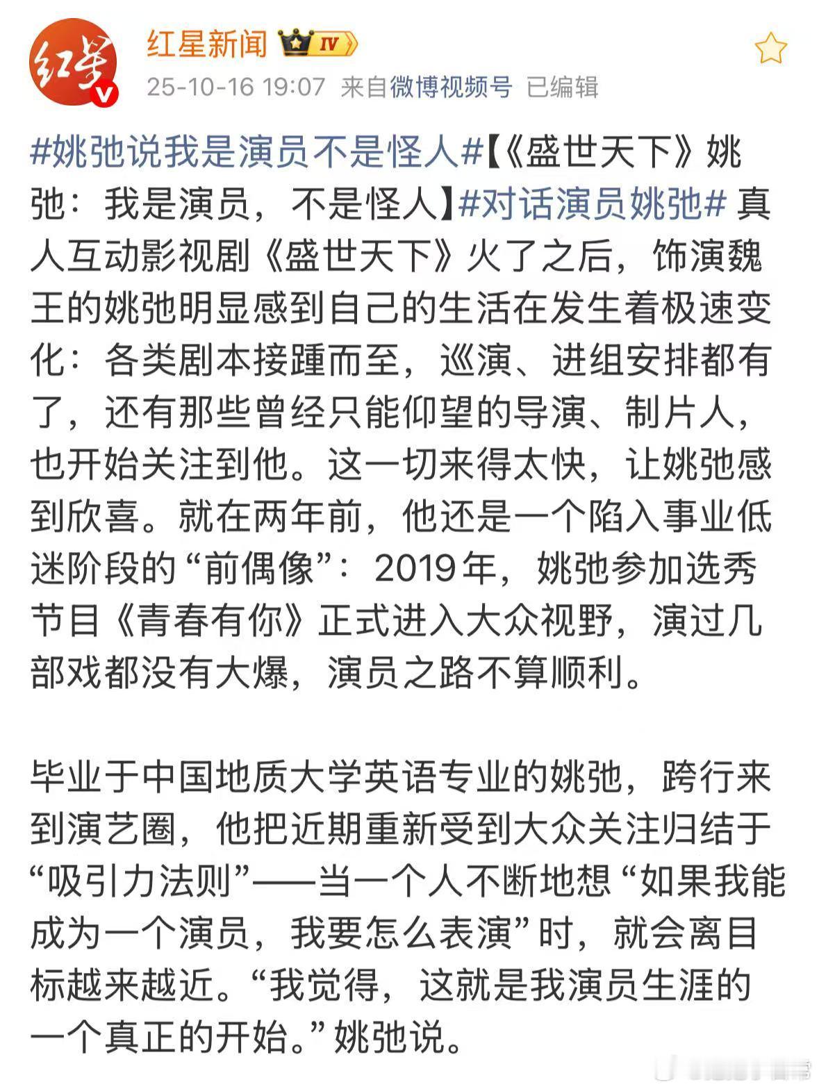 姚弛说我是演员不是怪人红星新闻对话姚弛 青春期就带着“怪人”标签,演戏后又因身份受歧视,姚弛的演员路太曲折。好在魏王一角让他发光,收获了迟来的认可。