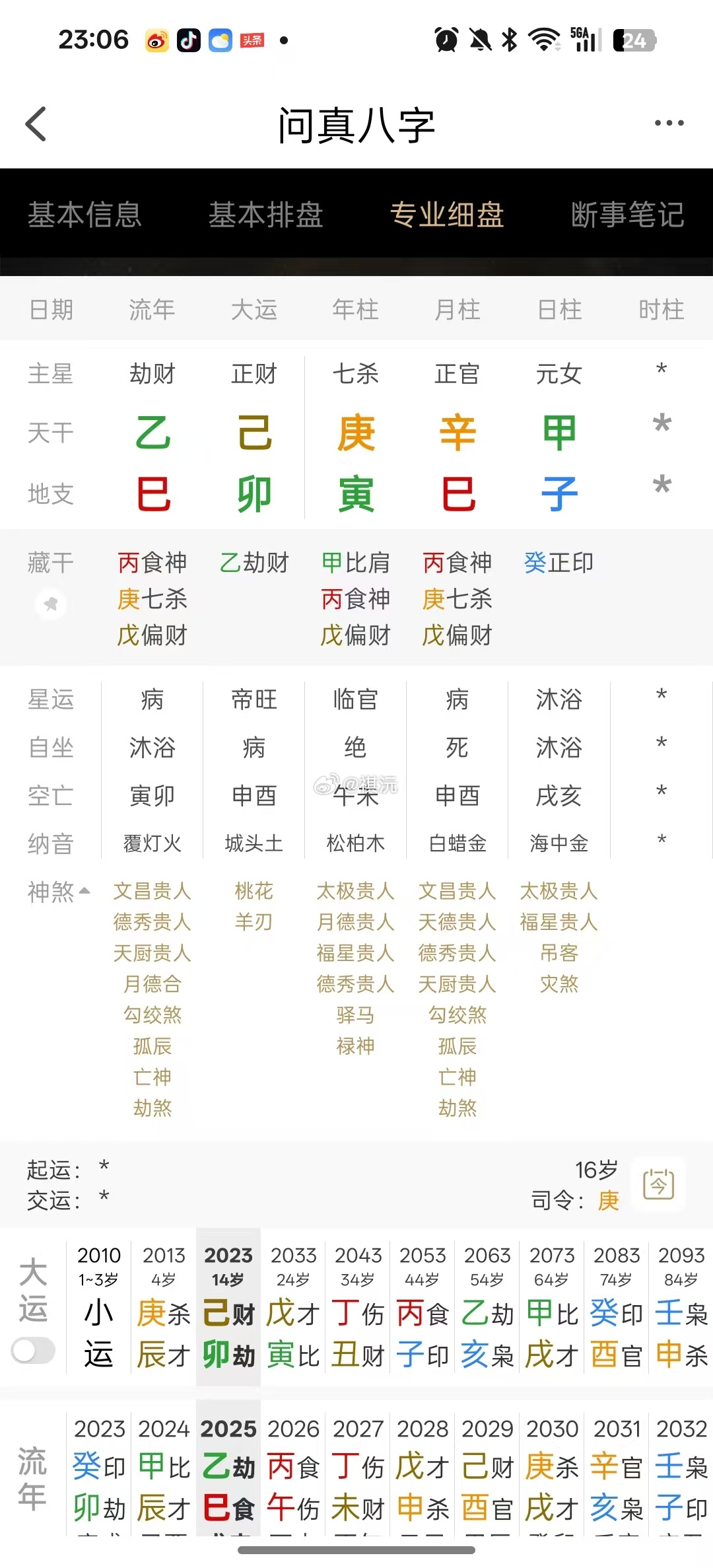 小女孩的这个命局还要再凶一点,年上七杀克禄。与上一条信息,都是代表年少时,身体容易有血光、受伤。