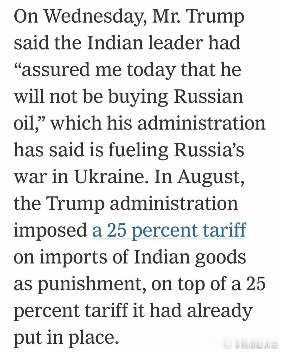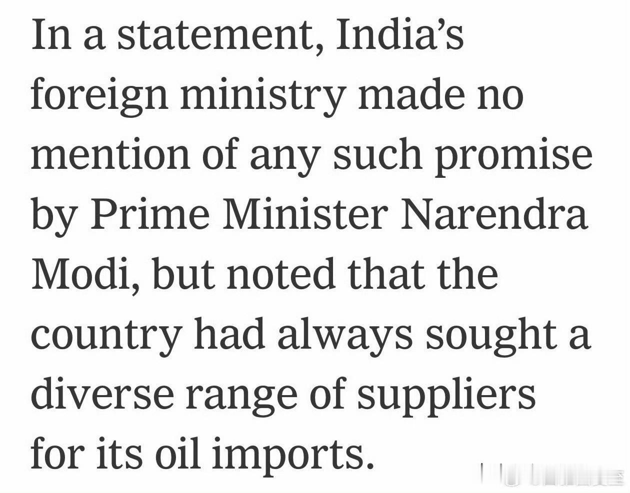 Trump:和印度总理通电话,他向我保证,不会再买俄石油。 随即—— 印度外交部发言人:最近几天两人没通话 印度政府官宣,没有确认政策变化,而是强调:进口石油,渠道一直多样。 瞬间被打脸,好在习惯了。 特朗普揪住印度不放,还是记得前仇,印巴停火,特朗普揽功,印度不承认。而巴基斯坦趁机拱火,极力称赞特朗普促成停火,并为他申请诺贝尔和平奖候选人提名。