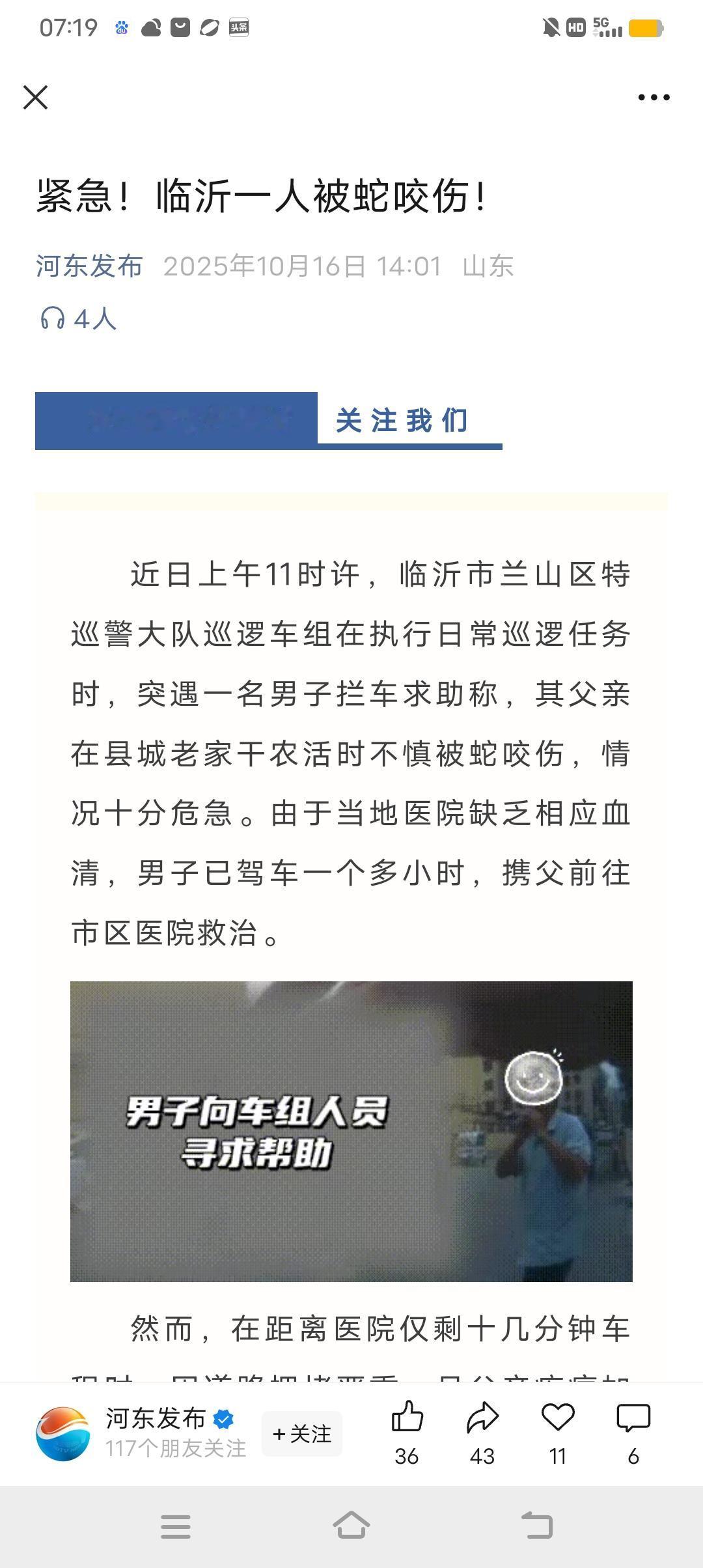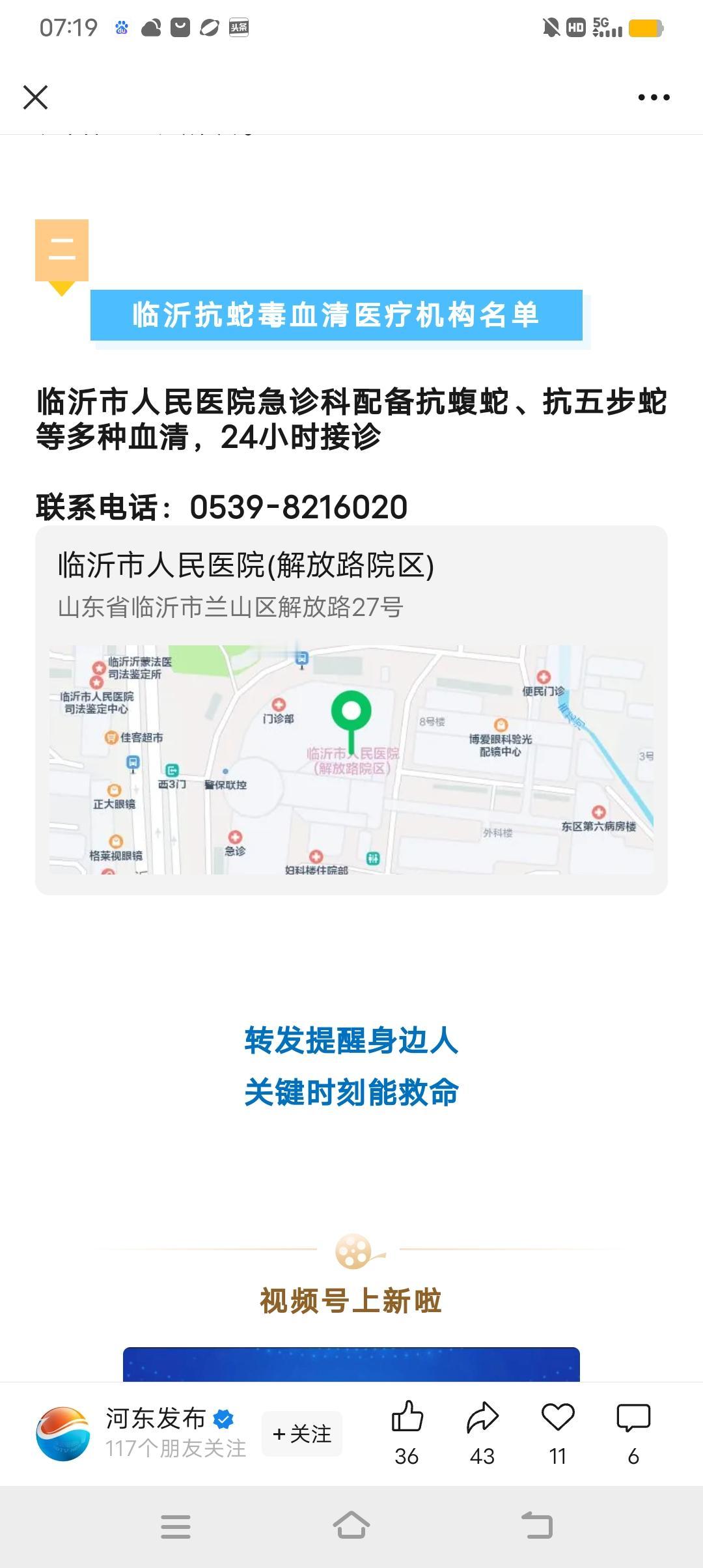 没记着临沂有毒蛇呀,怎么还会被咬了呢?老卜从小只记得两种蛇,一种是带花的,叫臭蛇,另外一种是青蛇,都没有毒。传说麦收季节有一种白蛇,可以在麦芒上跑,很细,我没见过。欢迎大家留言文明交流!