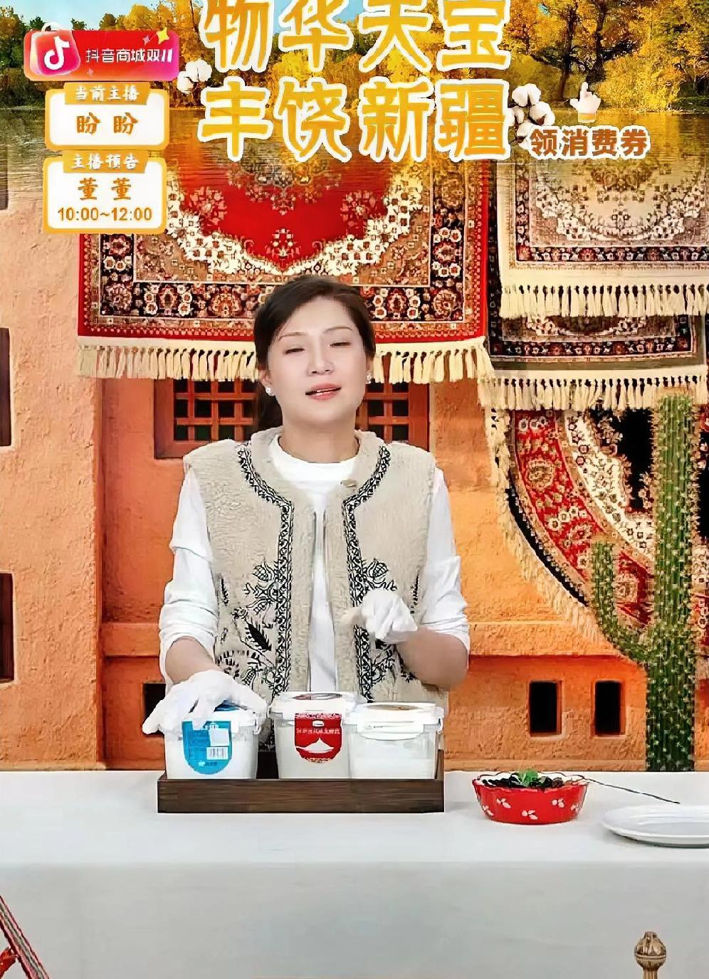 你没想到吧?盼盼也在直播间蛐蛐她妈妈,她说他妈妈特别喜欢“西域春”的桶装酸奶,酸