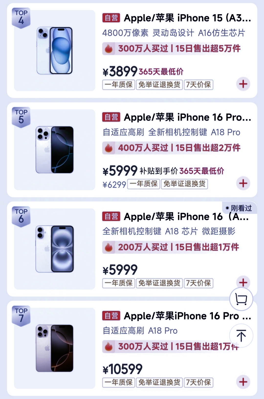 iPhone15,超300万人买过 iPhone16,超200万人买过 iPhone16Pro,超400万人买过 iPhone16ProMax,超300万人买过