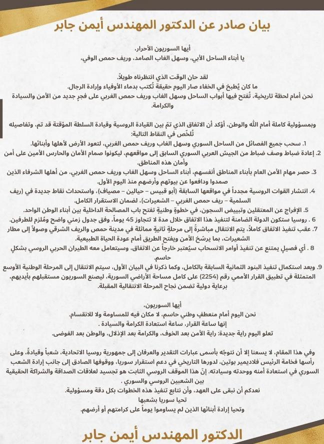 巴沙尔最后的势力也全部完了!俄罗斯与朱拉尼达成协议,所有武装组织都要撤出叙利亚沿海地区。朱拉尼释放被关押的巴沙尔军队军官,并且恢复军官和士官职务。 如果有武装组织拒绝撤离叙利亚海岸线地区,那么,俄军可以进行空中打击进行轰炸。俄罗斯军队将重新部署到叙利亚多个地点,以确保叙利亚局势稳定。 阿拉维派可以掌握自己的公共安全,在阿拉维派聚集区有高度自治权利。俄罗斯在重建叙利亚军队,开发矿产资源,以及建设基础设施方面,对朱拉尼进行支持。 俄罗斯军队全面返回叙利亚,土耳其开始军事重建叙利亚军队。巴沙尔的基本盘,阿拉维派获得自治权,叙利亚军队前军官将会被释放,甚至恢复职务。 这一切都说明,朱拉尼的统治更加巩固。而巴沙尔再想重返叙利亚,登顶大马士革。几乎已经是不可能完成的任务,基本盘都被拉拢过去了。但可以继续在莫斯科做一个富翁! 俄罗斯军队重返叙利亚,也就控制了黎巴嫩真主党与伊朗的生死运输线。俄罗斯拿到了更多的筹码,可以压制伊朗和以色列。