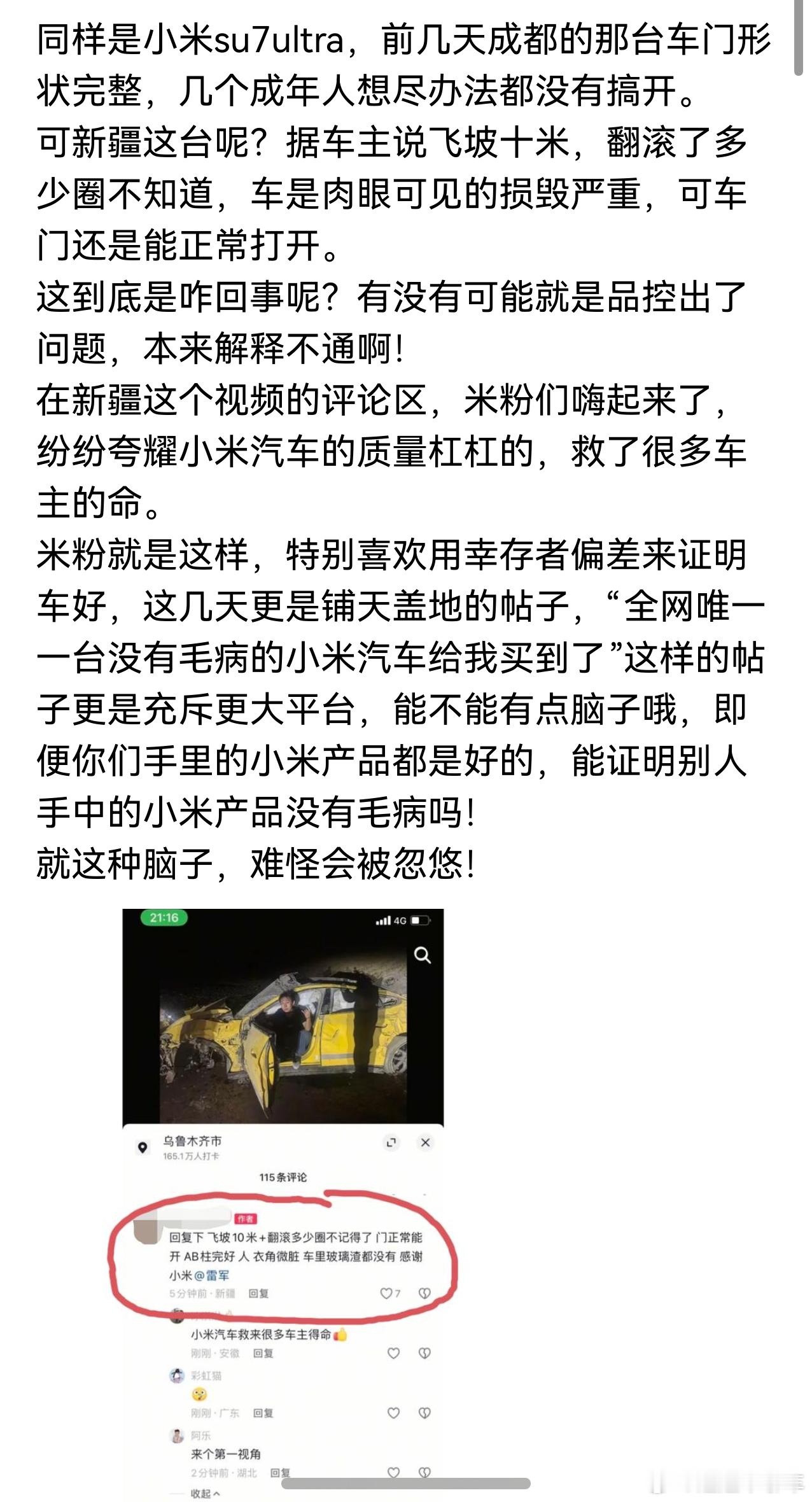 小车滚下坡车主无恙感谢雷军同样是翻滚了几圈,怎么差距就这么大呢?都感觉不是一个生产厂商[泪奔]