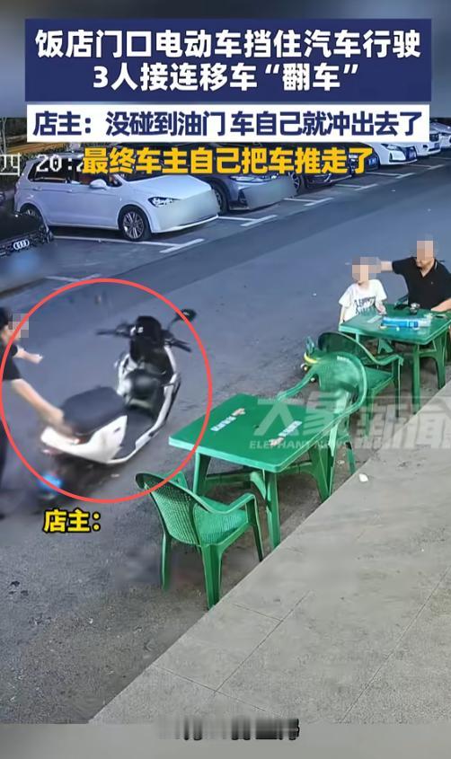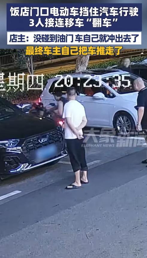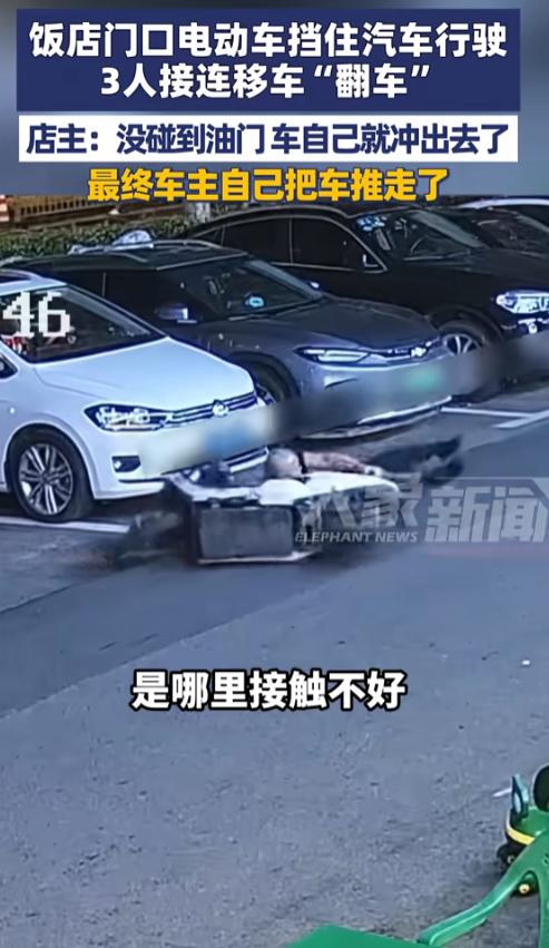 10月16日,上海,一女子见饭店门口有辆电动车挡住汽车行驶,便上前挪车,谁知她刚