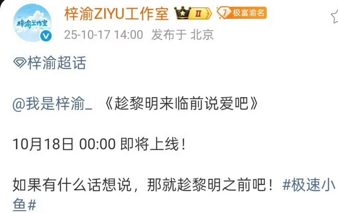 报📣📣梓渝又一首新歌《趁黎明来临前说爱》10.18零点即将上线梓渝新歌