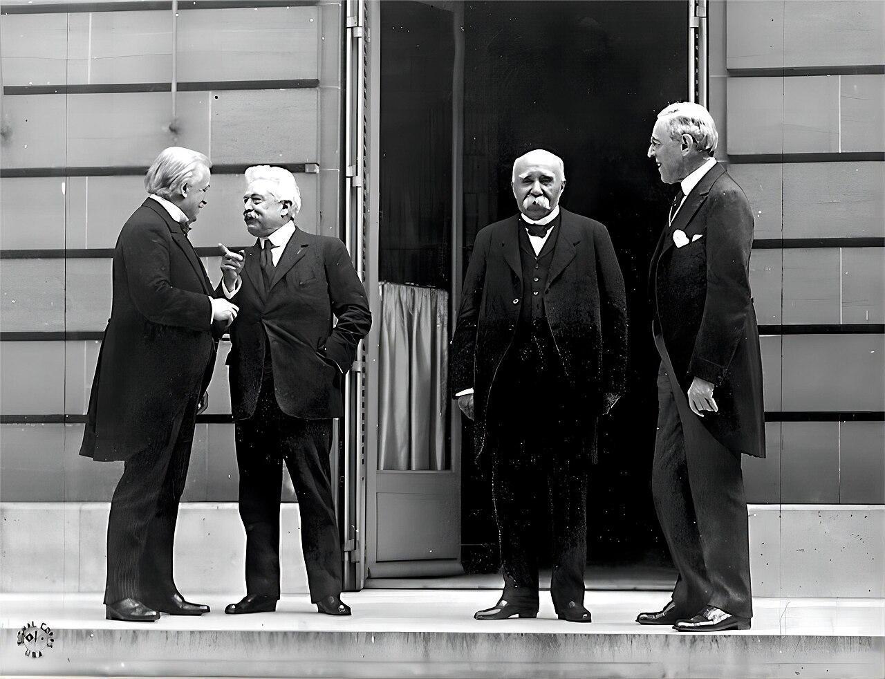这张照片定格了1919年巴黎和会“四巨头”的历史性会面,从右至左依次是伍德罗·威
