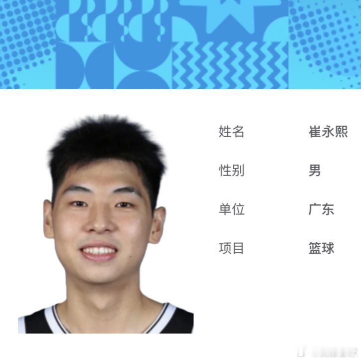 崔永熙年少成名,进过国家队、打过NBA,以至于很容易让人忘记原来他才22岁。广东全运U22男篮部分球员证件照👇