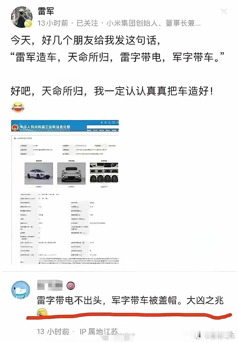 颜值才是第一位的,小字才是真谛。大家说呢?雷军雷军[超话]小米汽车 ​​​