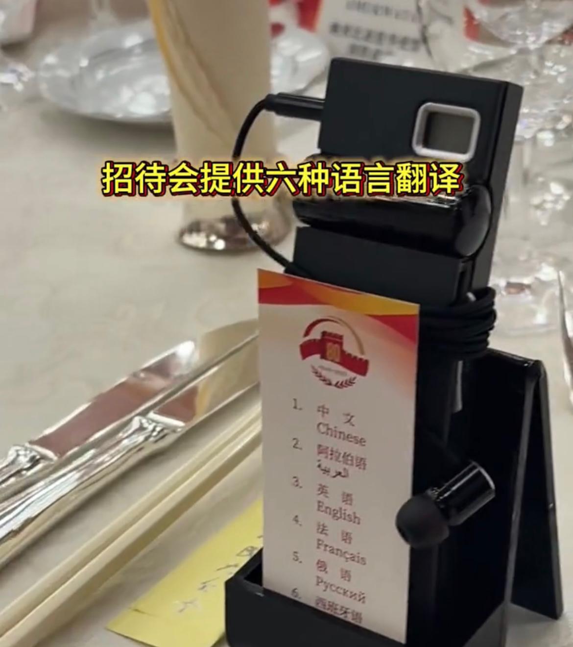 九三阅兵结束后,在人民大会堂举行了招待国宴,四菜一汤包含山珍海味。 宴会上的这个细节让人感到十分暖心! 这一天是一个值得纪念的日子,五湖四海来自不同国家的外宾齐聚一堂,在人民大会堂内举行了这场隆重的盛宴。 踏入国宴现场,一片庄重而喜庆的氛围扑面而来。正中央的荧屏上,醒目的“胜利”两个大字,仿佛在诉说着那段艰苦卓绝但最终赢得胜利的光辉岁月。 除了让人关注的菜品五菜一汤以外,更让人感到暖心的是,现场提供了6种语言的翻译,中文、阿拉伯语、英语、俄语、法语、西班牙语,涵盖了世界上主要的语言体系。 充分的考虑到了这场参会的外宾来自世界各地,为了避免语言沟通上的障碍,贴心配备了翻译,时刻关注每一位外宾的一举一动,能在关键时刻提供实时翻译。 这一贴心的安排,让每一位宾客都能毫无障碍地参与到交流中来,感受到中国作为东道主的细致与关怀,仿佛置身于一个温暖的大家庭中。