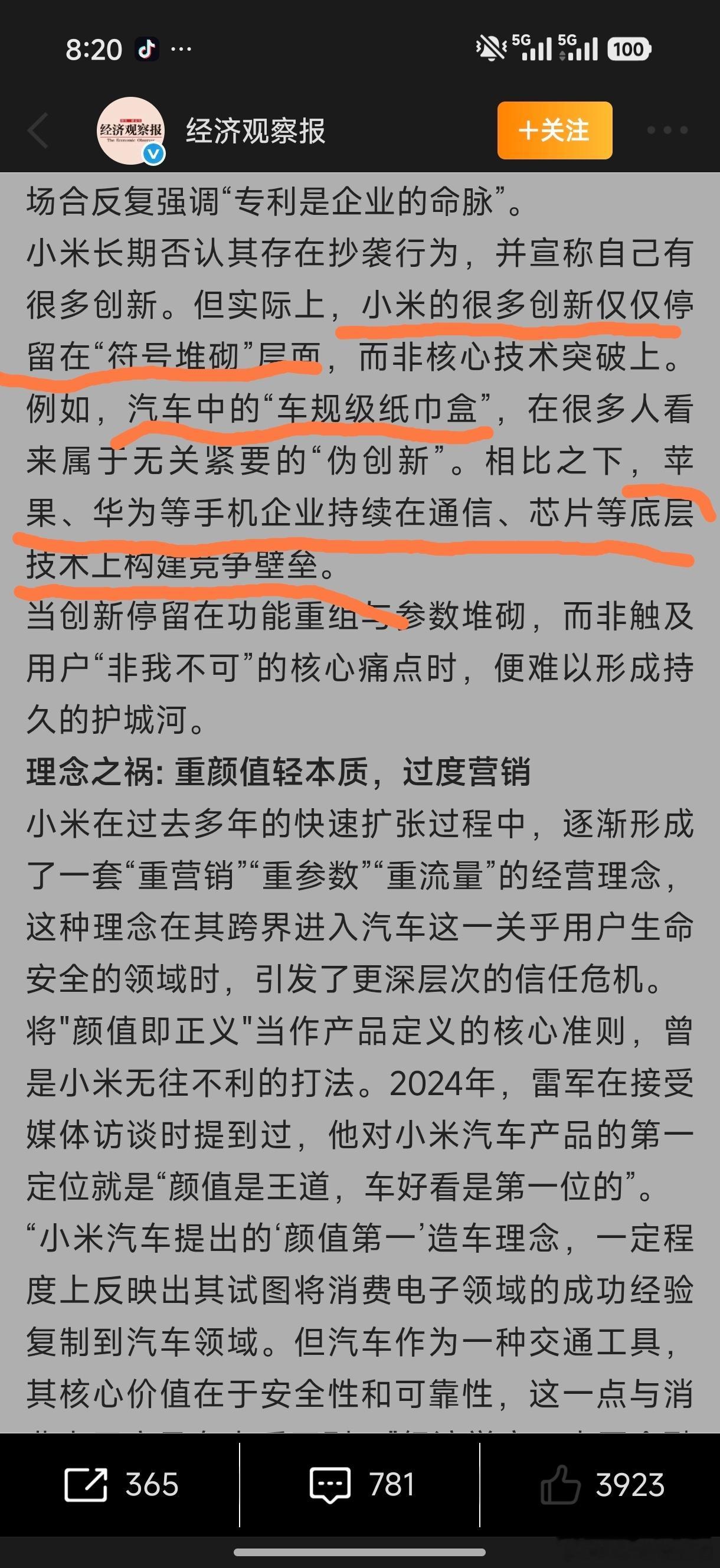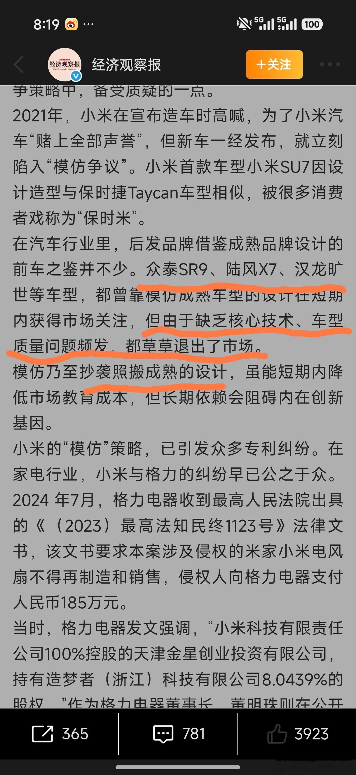 ①【贵报拿众泰SR9/陆风X7/汉龙旷世和小米su7&小米yu7类比】实在荒唐。前者几乎仅停留在外观copy,但是后者是出于【为满足年轻用户对于高颜值高性能和其他够用的需求而设计的】。如果你体验过taycan和法拉利purosangue 你就不会有这样的观点。你会发现,除了颜值类似,小米su7和yu7的很多体验如空间/智能化远胜两者。