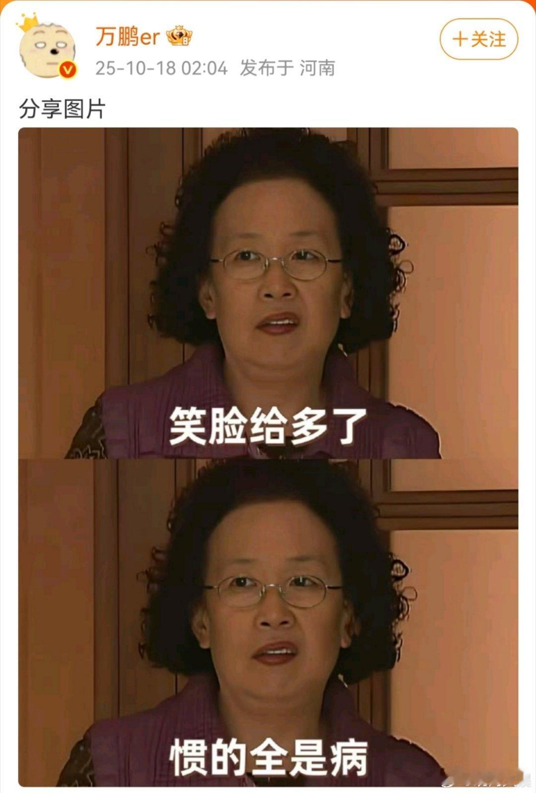 万鹏公司18日凌晨回应:相关内容严重失实。万鹏发了一张“笑脸给多了惯的全是病”的表情包进行回应,头像也换了白眼表情包。