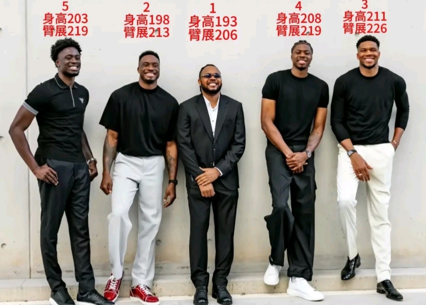 刚好一套阵容!字母哥五兄弟的身高的臂展,这大哥看起来不像是有1米93的样子,