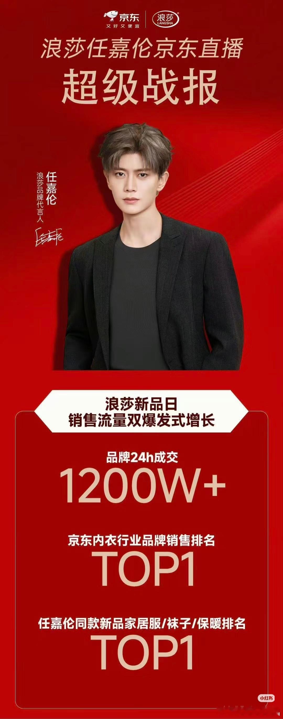 任嘉伦在京东直播浪莎新品,官方发战报了,销量流量双爆发式增长!24小时成交超过1200万!累计观看人数超过270万!销量在同品类top1 ![鼓掌][鼓掌][鼓掌]