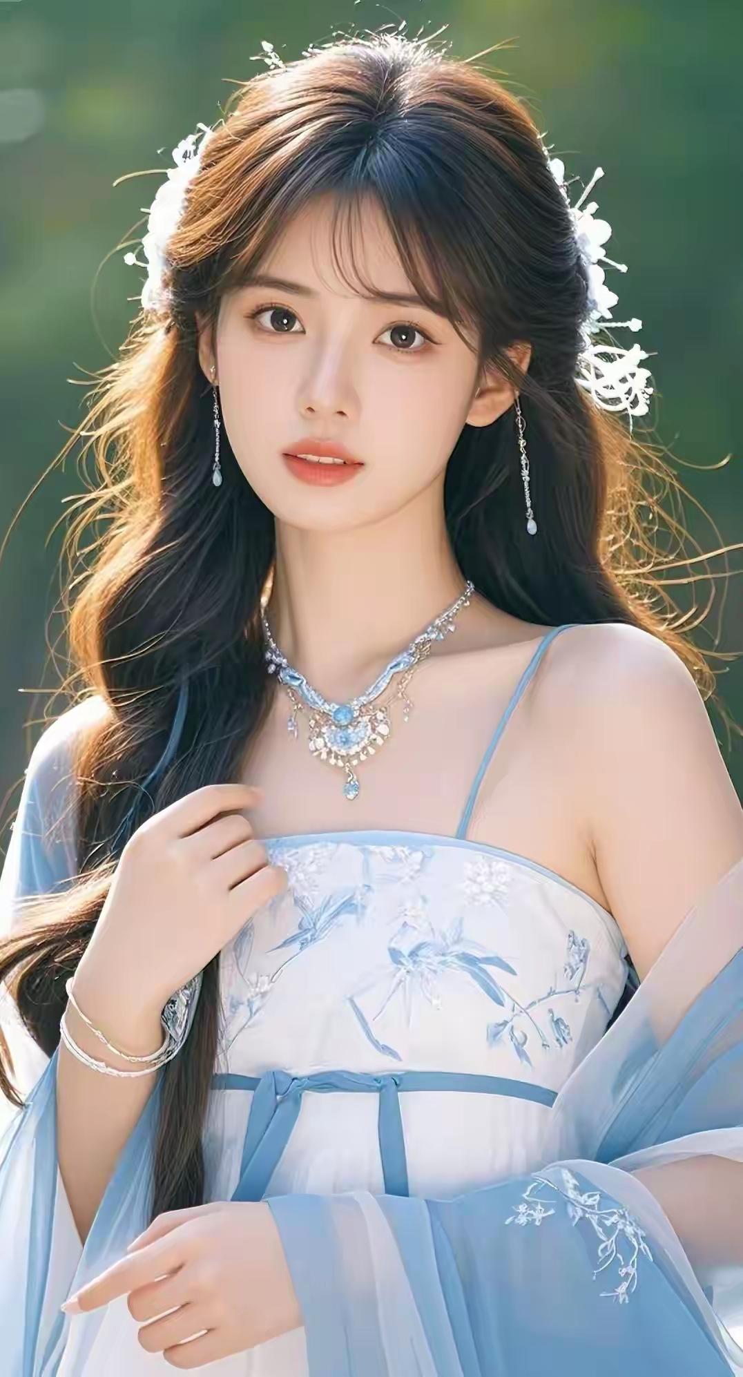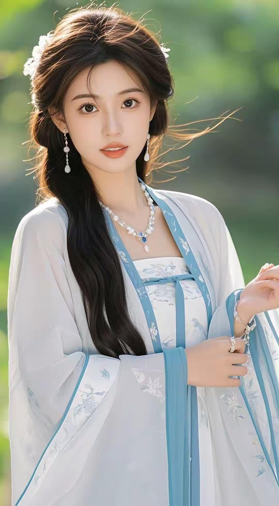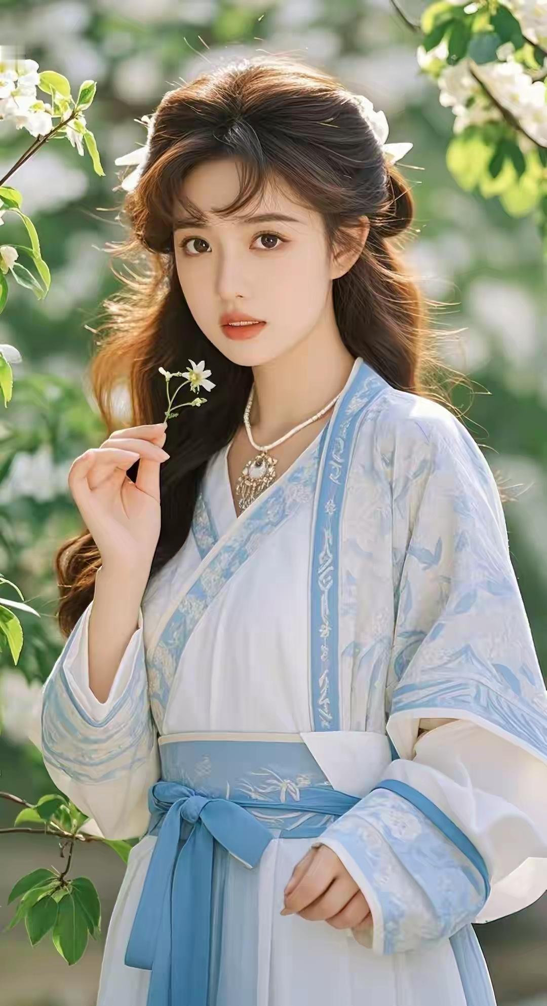 蓝白汉服+花饰,这组国风穿搭美成仙女
