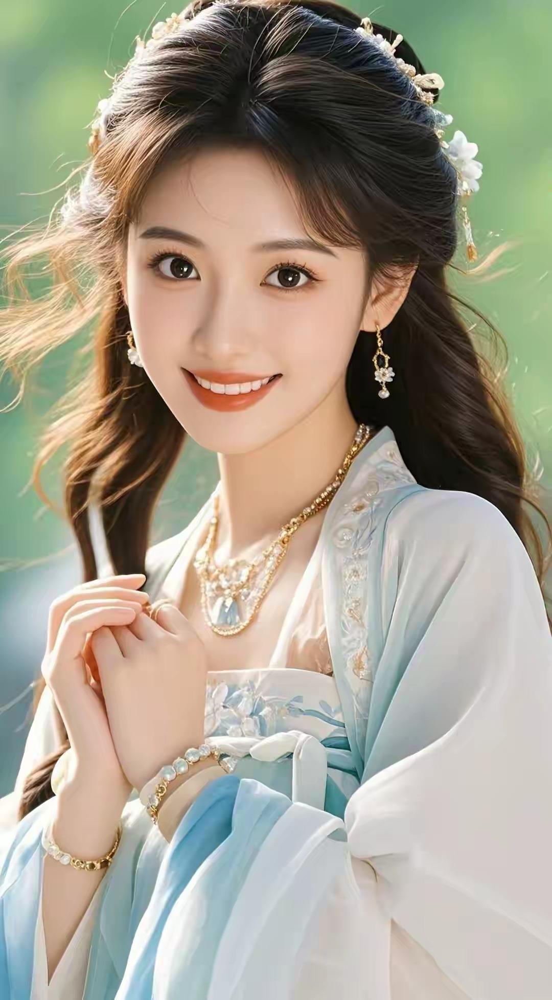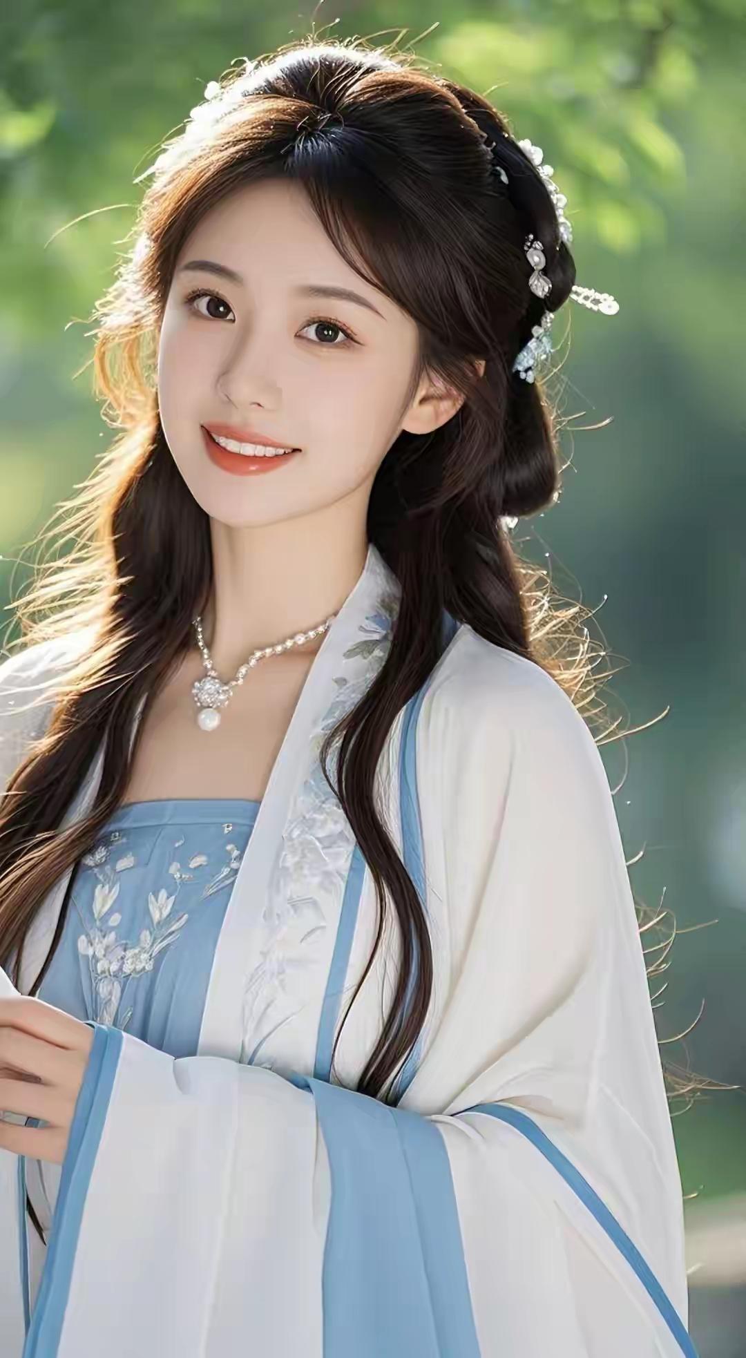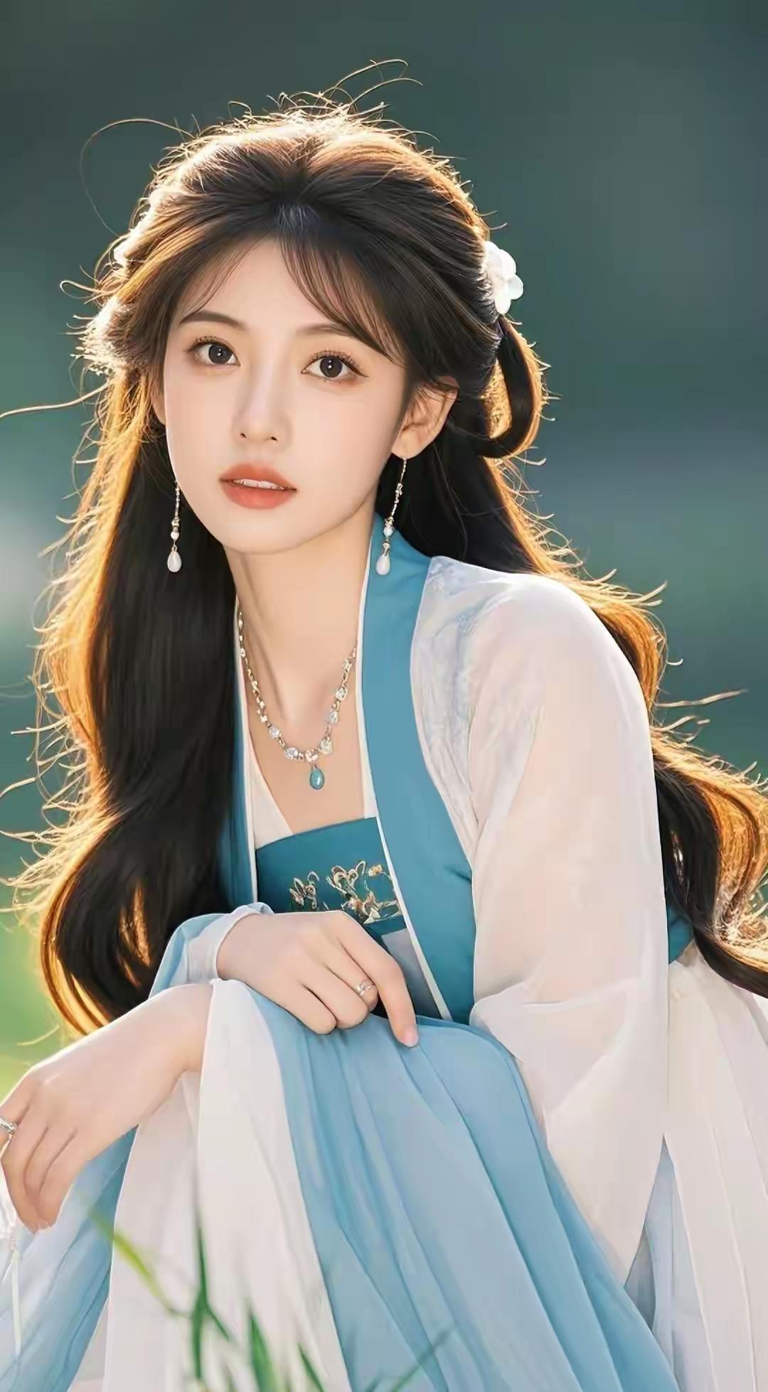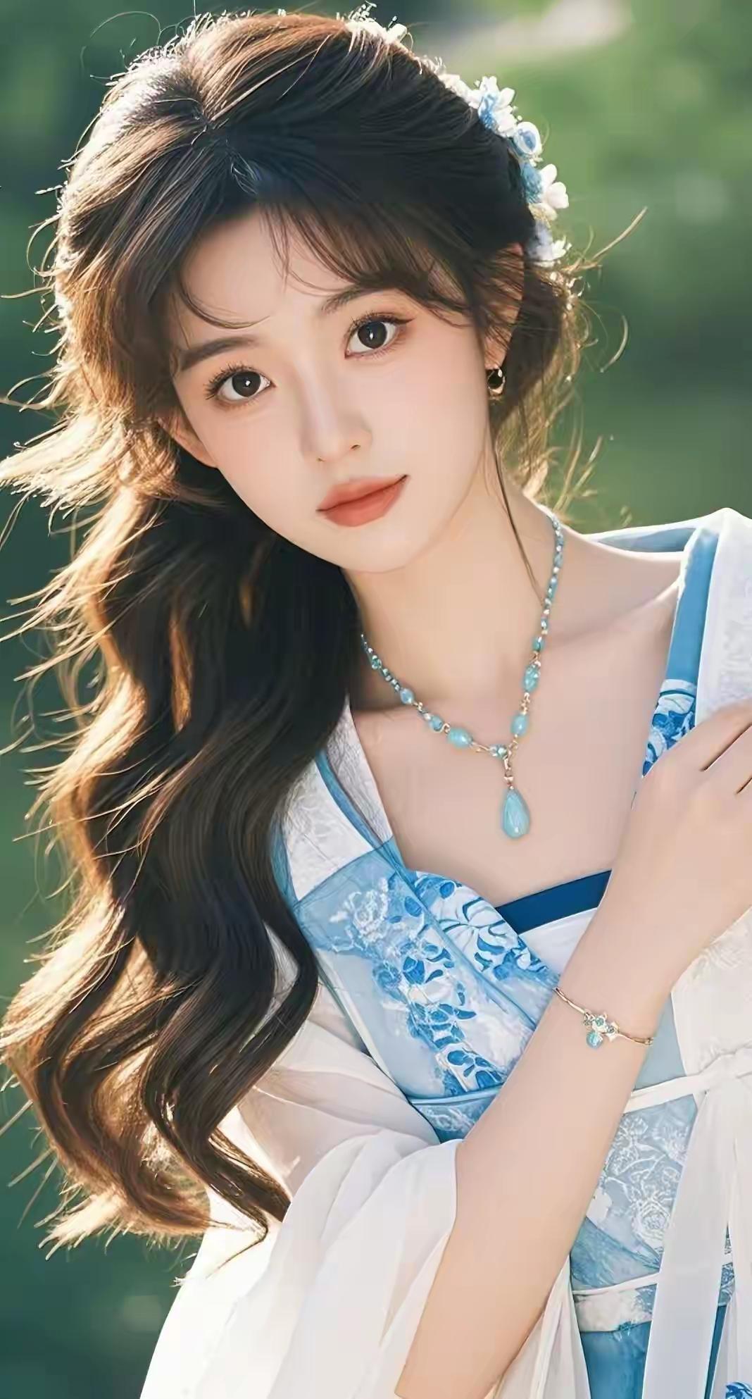 蓝白汉服+花饰,这组国风穿搭美成仙女