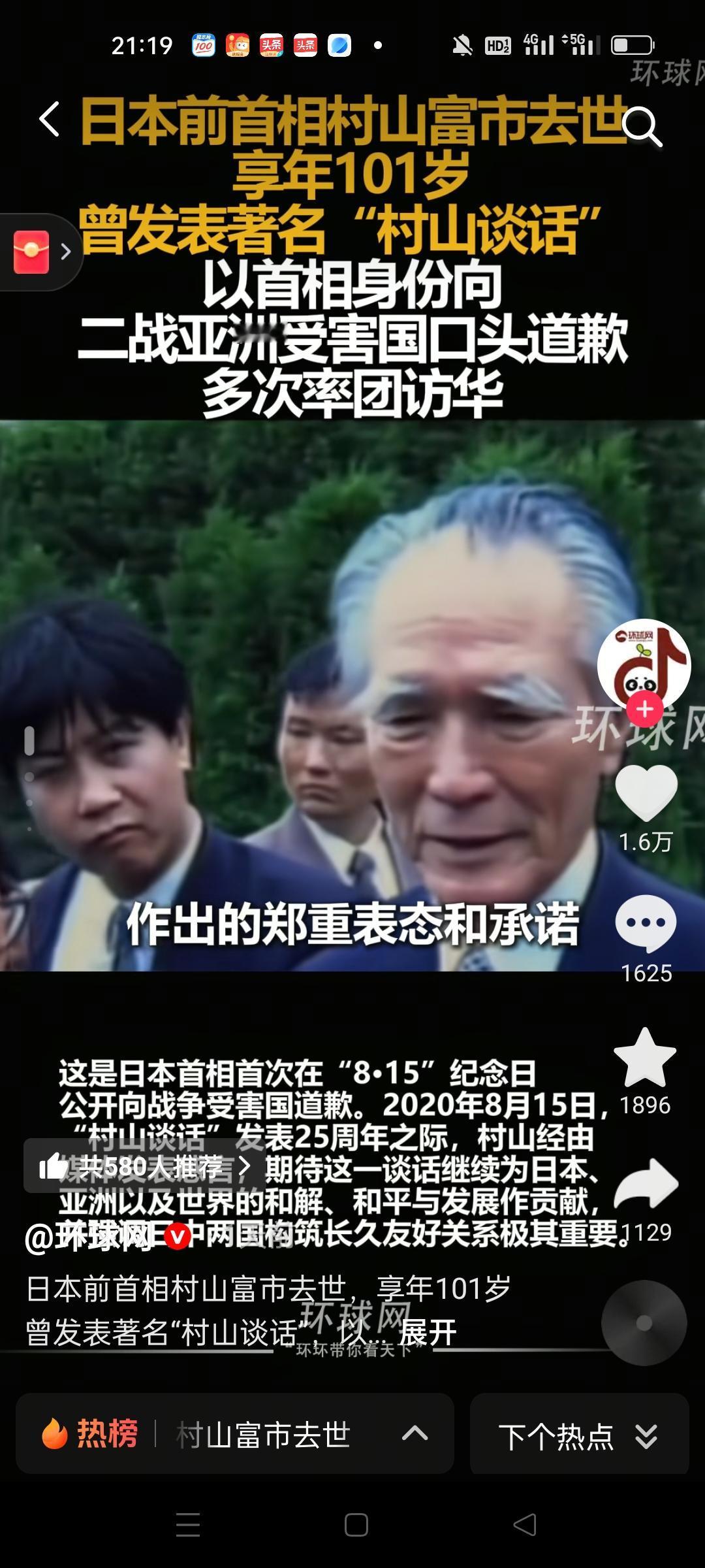 日本前首相村山富市去世, 享年101岁! 评论区都是一片好评! 网友说,活到100多岁是有道理的!算是一位有良知的日本人,难怪他长寿! 安培就活不过他,来世做个中国人,不用和日本人生气! 还有网友说村山老首相走好中日的和平缔造者,世界和平的参与者是一位优秀的政治家。也是日本首相里最明智的! 这世上少了一位可爱的好老头,希望在那个世界管管日本的不孝子们! 村山富士