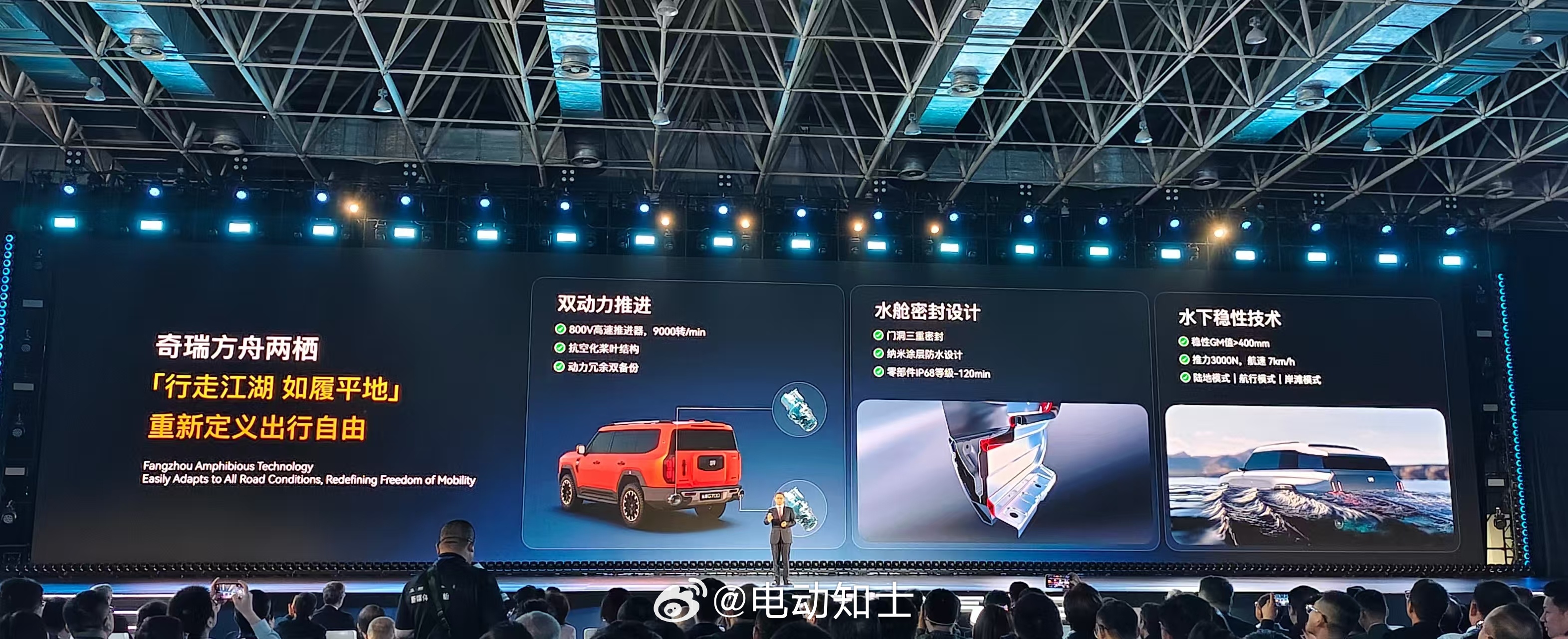 在,刚刚奇瑞CTO高新华介绍的奇瑞方舟两栖技术玩得有点大,号称全球首款...