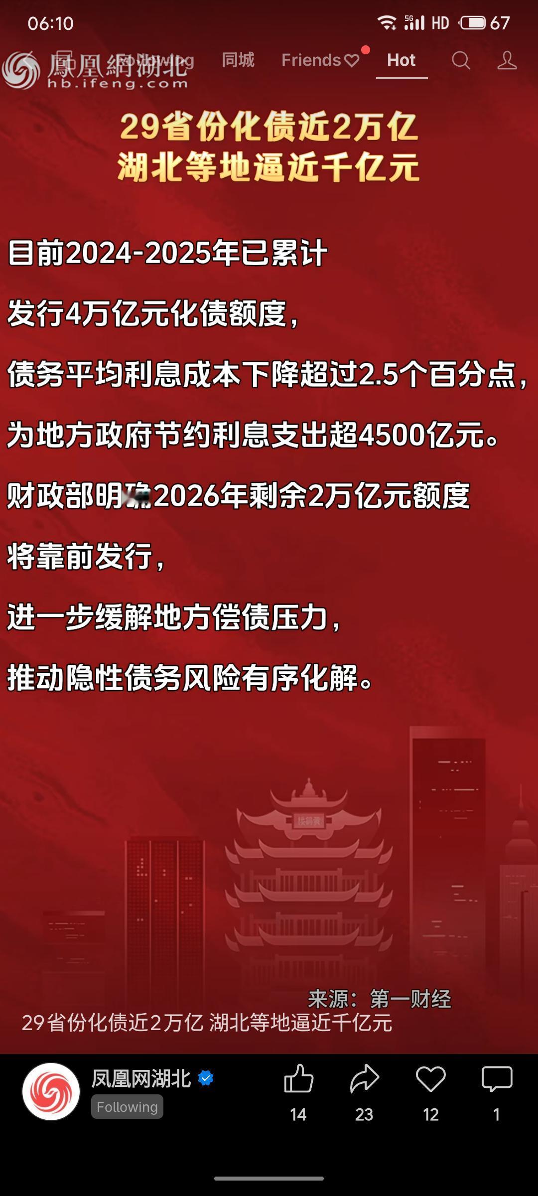 截至2025年10月,全国29省份累计发行近2万亿元再融资债券,基本完成年度化债目标。2024-2025年化债总额达4万亿元,为地方节约利息超4500亿元。剩余2万亿元额度将于2026年靠前发行,持续缓解偿债压力。