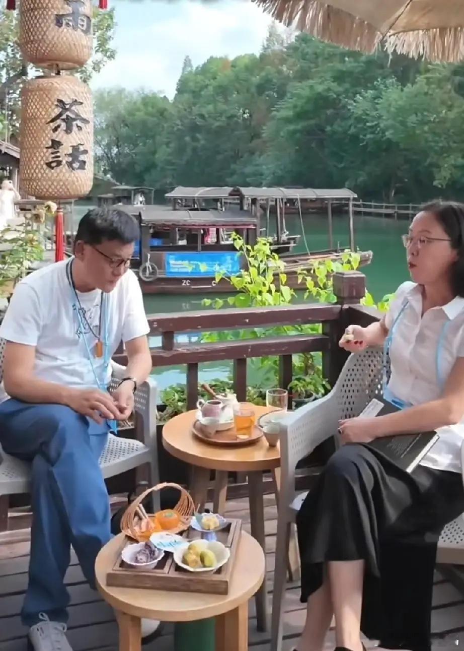 李国庆真的很爱白月光老婆张丹红。两人受邀参加乌镇戏剧节,坐在小河边喝茶吃点心,颇有岁月静好的感觉。