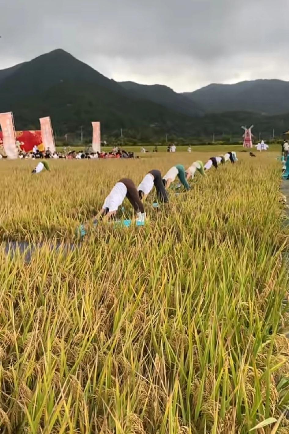 前有江孜烟花秀,现有象山稻田秀瑜伽,总有层出不穷的一批人才 农民的孩子看不惯这种宣传噱头,没有看出脑洞大开的感觉,相信有很多人看了一定会有一样的感觉:恶心…..稻田养生,才吃饱饭几年!那么闲下去收水稻看看,草地上山上多可以搞,为什么一定要在稻田里,这样得压坏多少粮食