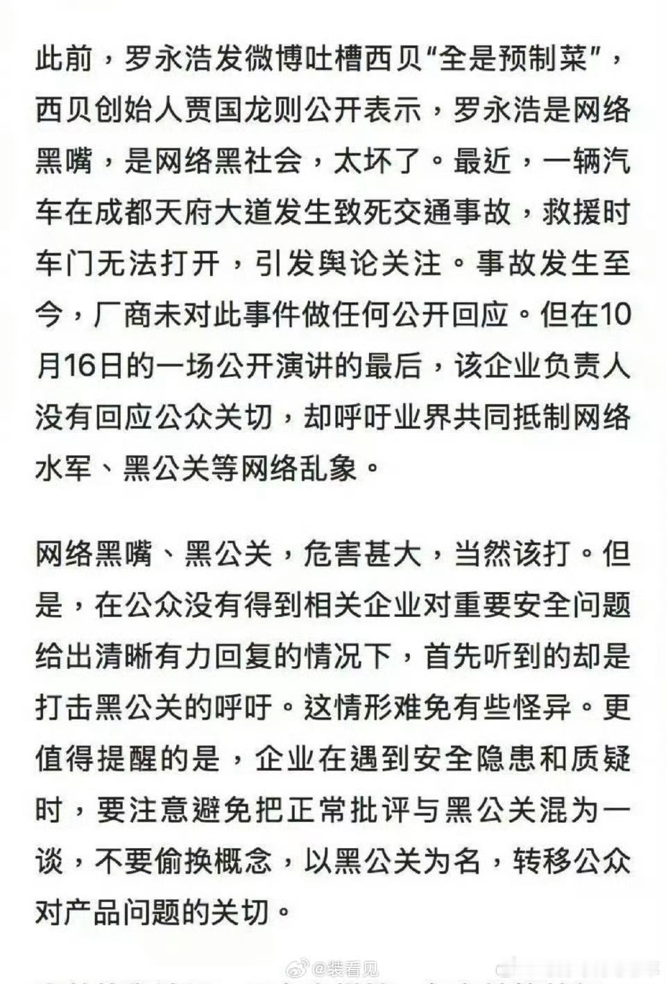 切莫用黑公关污名化公众安全关切非常赞同。现在有些企业动不动,就把正常的公众安全关