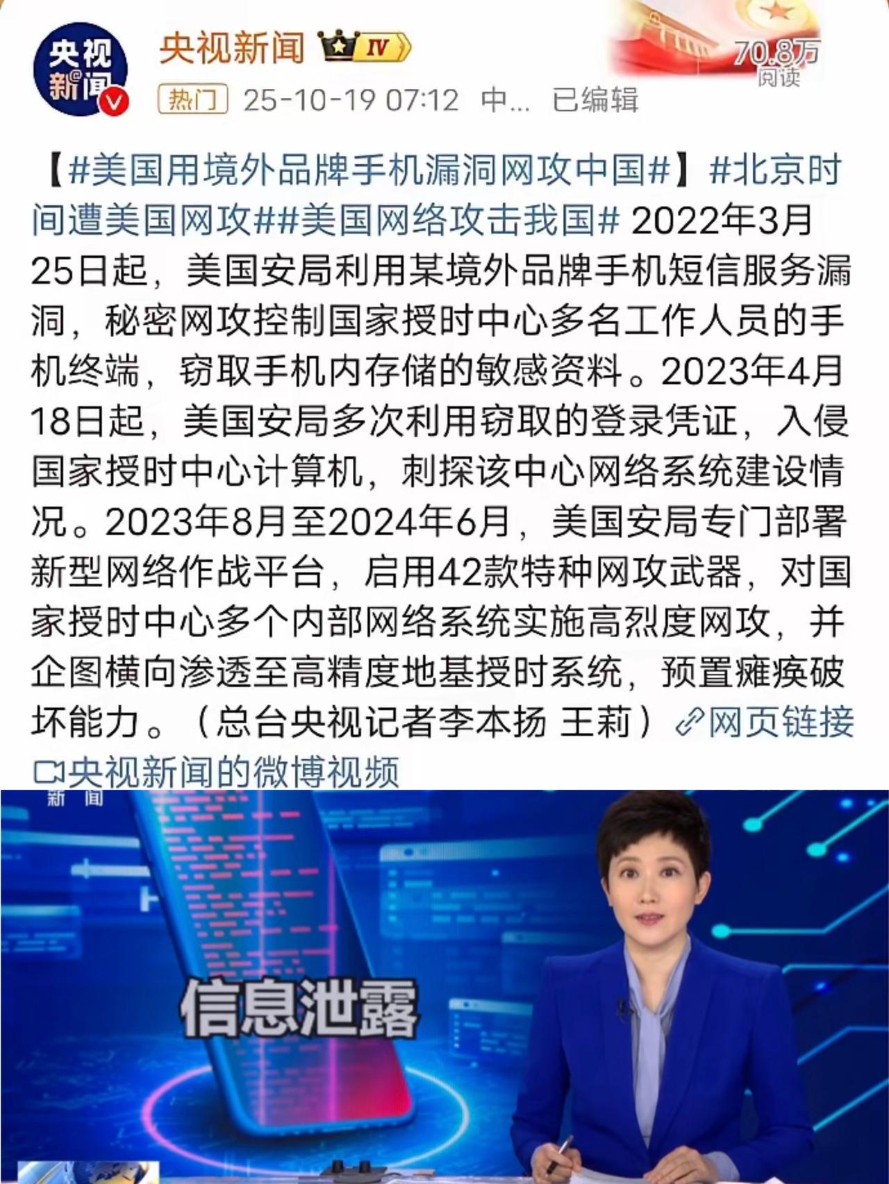 据央视新闻报道,美国国家安全局利用境外手机品牌短信服务漏洞,秘密网攻控制中国授时中心多名手机工作人员手机终端,窃取手机内存储的敏感资料。 这哪是漏洞,分明是故意留的“后门”!用脚想都知道是哪个牌子,国外手机就剩三星、苹果、诺基亚,后俩早没市场了。而且美国逼企业留后门又不是新鲜事,之前英伟达卖芯片,议员都明着要求留后门才放行,电报CEO都曝过美国用法律逼科技公司装后门,还下禁言令。 更让人后怕的是授时中心的地位——管着“北京时间”,金融、电力、国防全靠它授时,一旦被破坏,通信断、电网瘫都可能发生。就这么关键的地方,工作人员还在用境外手机存敏感信息,保密意识也太薄弱了。 美国这套路玩得溜,先让企业留后门,再借民用产品攻关键机构,还倒打一耙说我们“网络威胁”。这次能揪出来是万幸,但更该警醒:关键岗位的设备和意识,必须立刻补上漏洞。你觉得,该怎么杜绝这种“灯下黑”?