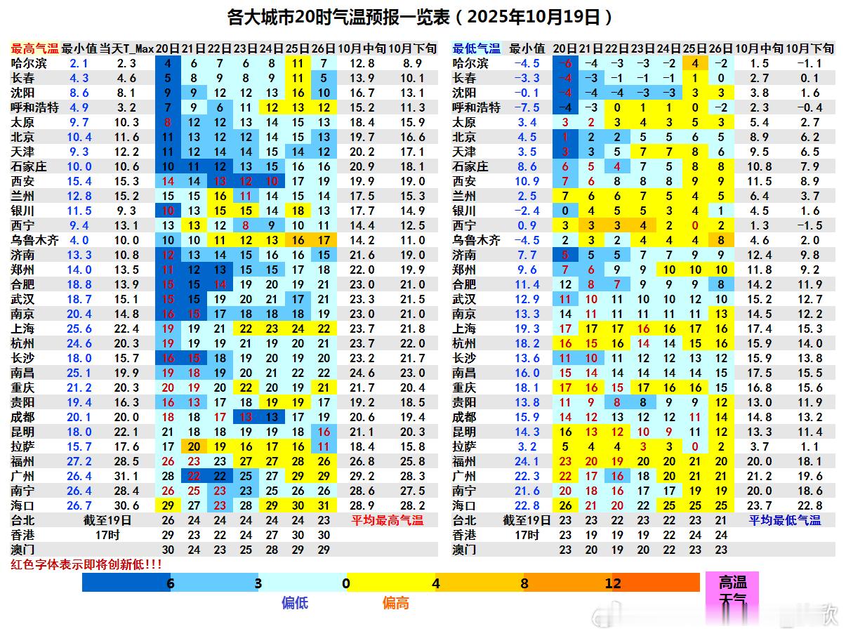 比如明天哈尔滨零下6℃到零上4℃,温差10℃。北京明天最低1℃,最高11℃,温差也有10℃。22日贵阳8-17℃,温差也接近10℃。未来大多数城市气温依然偏低,但22日以后偏低的程度会减轻。沈阳22日最高重返10℃以上,江南多地23日以后重返20℃以上。
