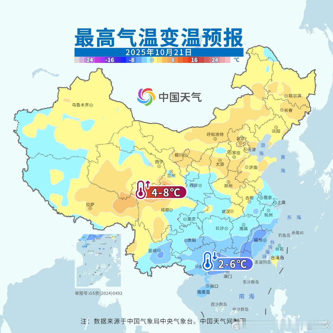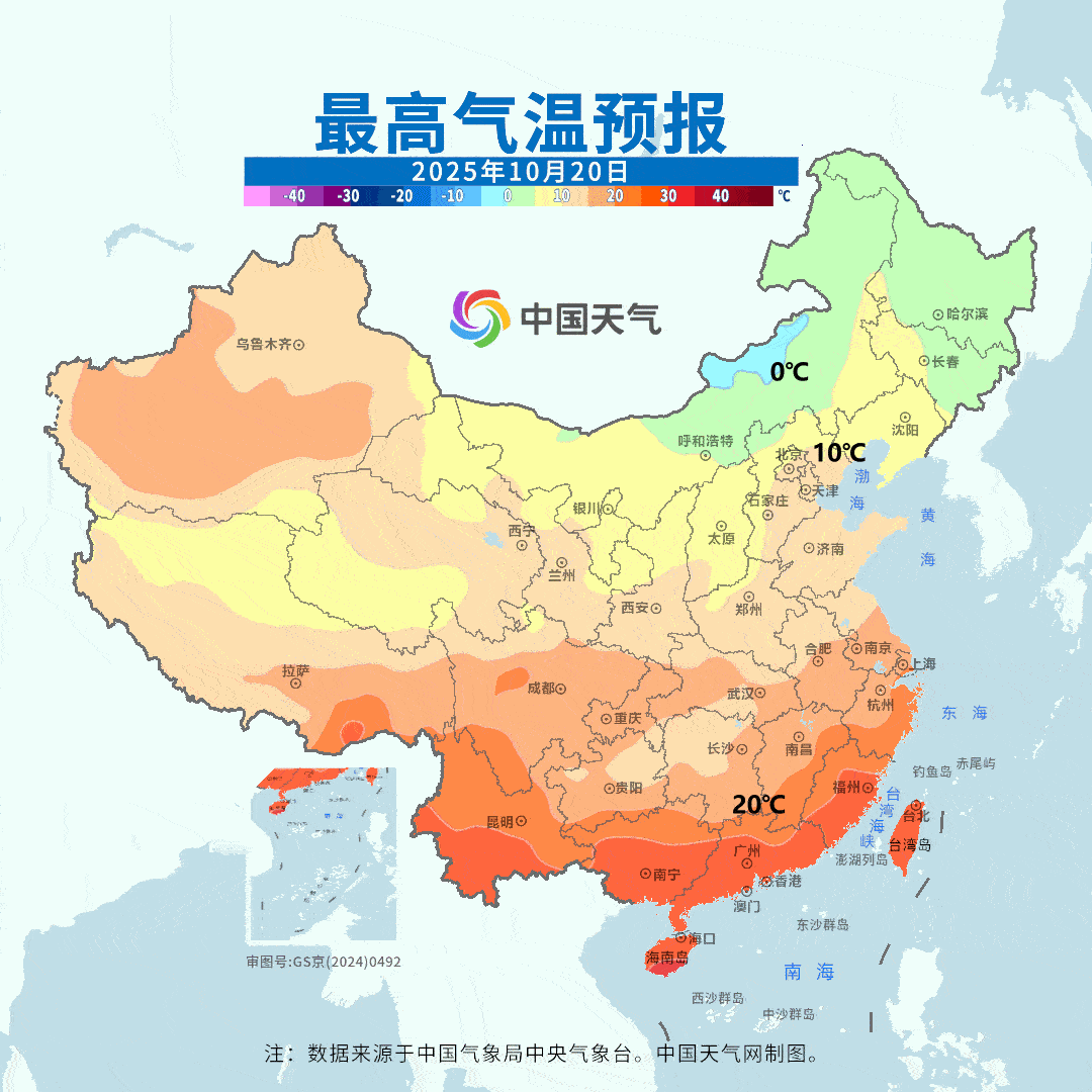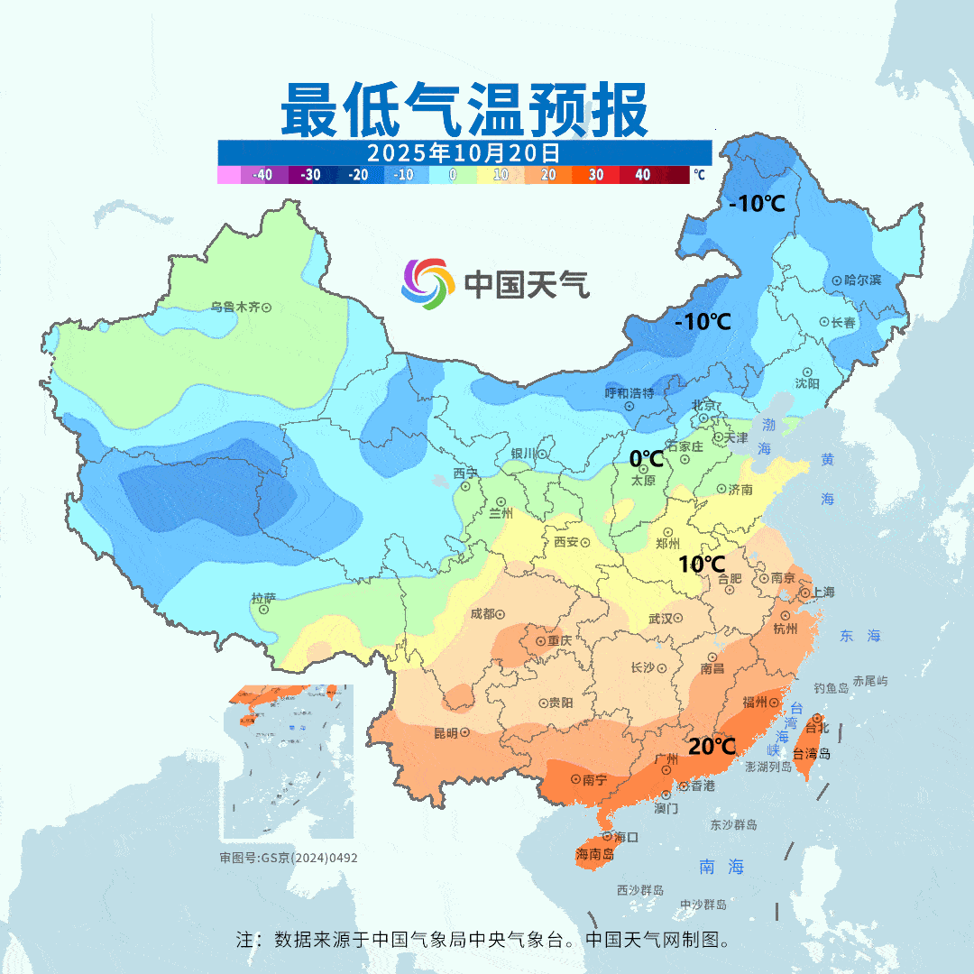 【气温】今天国家级气象站没有35℃以上高温,云南元阳34.3℃最高。未来2天,黄河以南多地气温可能还有下滑。而东北华北白天的气温开始回升,但是明晨东北华北多地的最低气温可能还会创新低。20-22日南方多地最低气温也会不断创新低,但22日白天南方开始升温。总之,未来北方和南方都会经历昼夜温差拉大的过程。