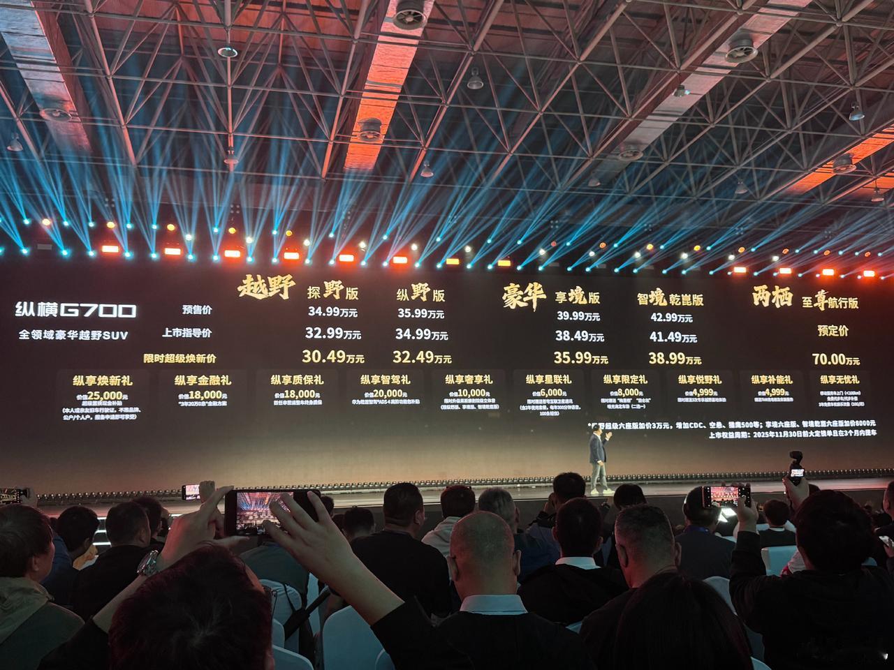 比预售价低4万多,30.49-38.99万(航行版70万),捷途纵横G700正式