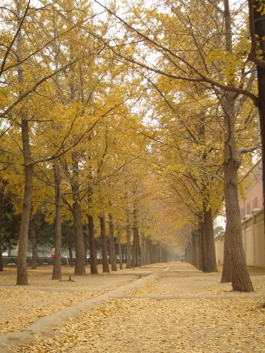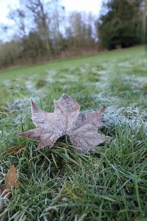 一份秋意十分凉, 片片落叶霜白茫。 路上行人上班忙, 三五好友聚一堂。
