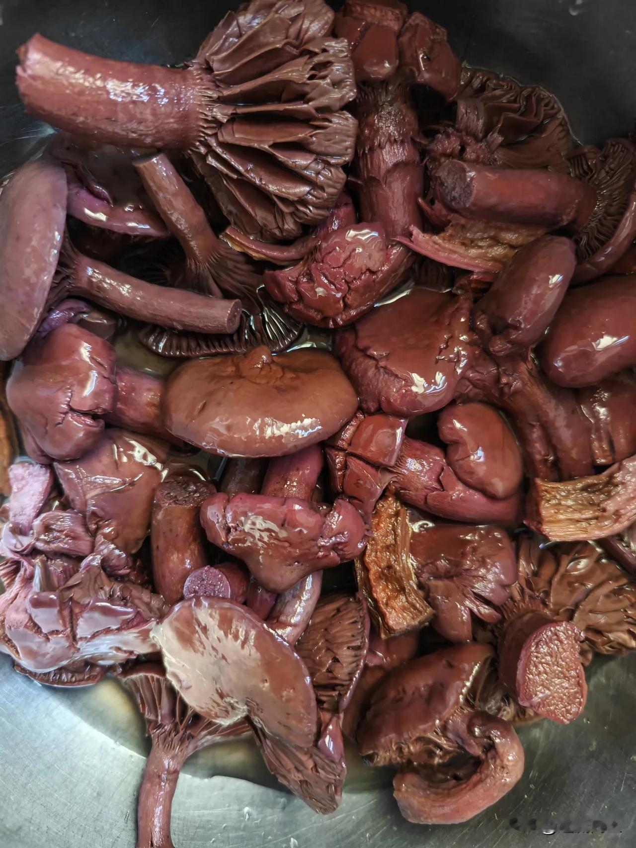 亲戚昨天给捎来的野生鲜红蘑,清洗的时候,发现有2个长的不是红蘑,没敢吃! 不知道人吃了会不会中毒,安全起见还是别吃了,因为吃自采蘑菇中毒的事,也时有发生。 这让我想起当年在单位采回来的野蘑菇,与小鸡炖熟后,媳妇孩子都不吃,我拿2块喂楼下的狗了,狗没事,然后我战战兢兢的吃了,反正我吃完还活着!