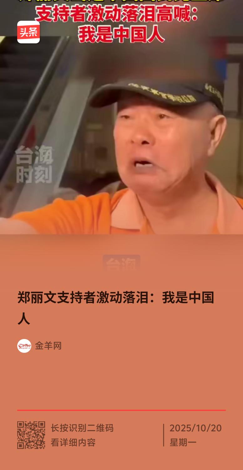 2025年10月18日国民党主席选举,郑丽文高票胜出,现场气氛热烈得很。中国台湾陆军官校41期生禚威力和同学们早早就等在国民党中央党部。当得知郑丽文票数大幅领先基本当选时,禚威力老先生激动落泪,代表“黄埔同学”高呼“我是中国人”,好多支持者尤其是黄埔老兵纷纷响应。 郑丽文竞选时就多次表态,要让全台人自豪说“我是中国人”,还批驳民进党两岸对立的策略。这些支持者对“大中国认同”有强烈归属感,期待两岸统一。这一幕真让人动容,也说明两岸统一是大势所趋,是众多人的心声。 中国国民党 国民党大选 国民党国统纲领