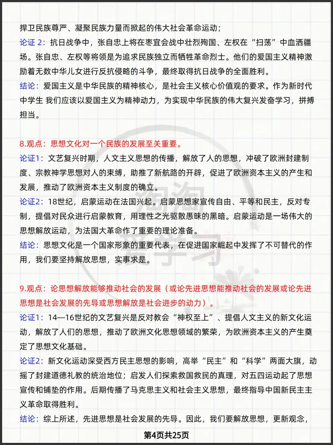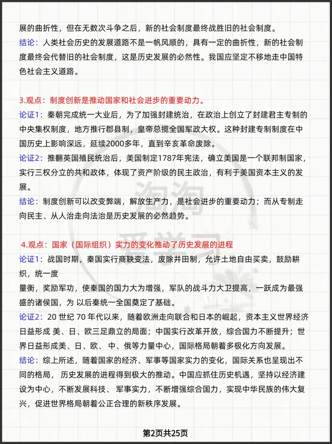 2026高考历史论述题论证思路汇编