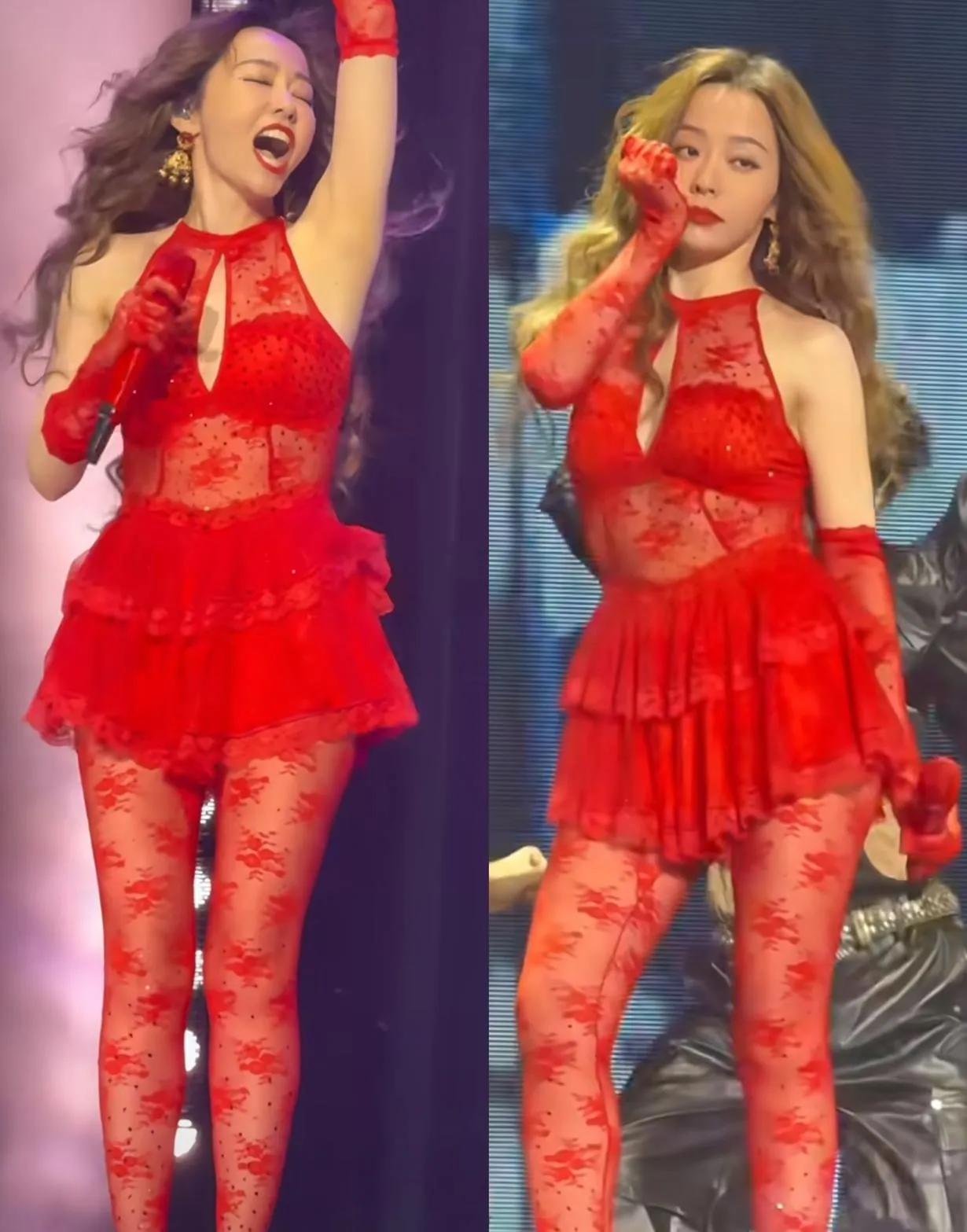 张靓颖41岁红蕾丝造型引热议,性感风争议背后藏心酸? 41岁张靓颖一袭红蕾丝