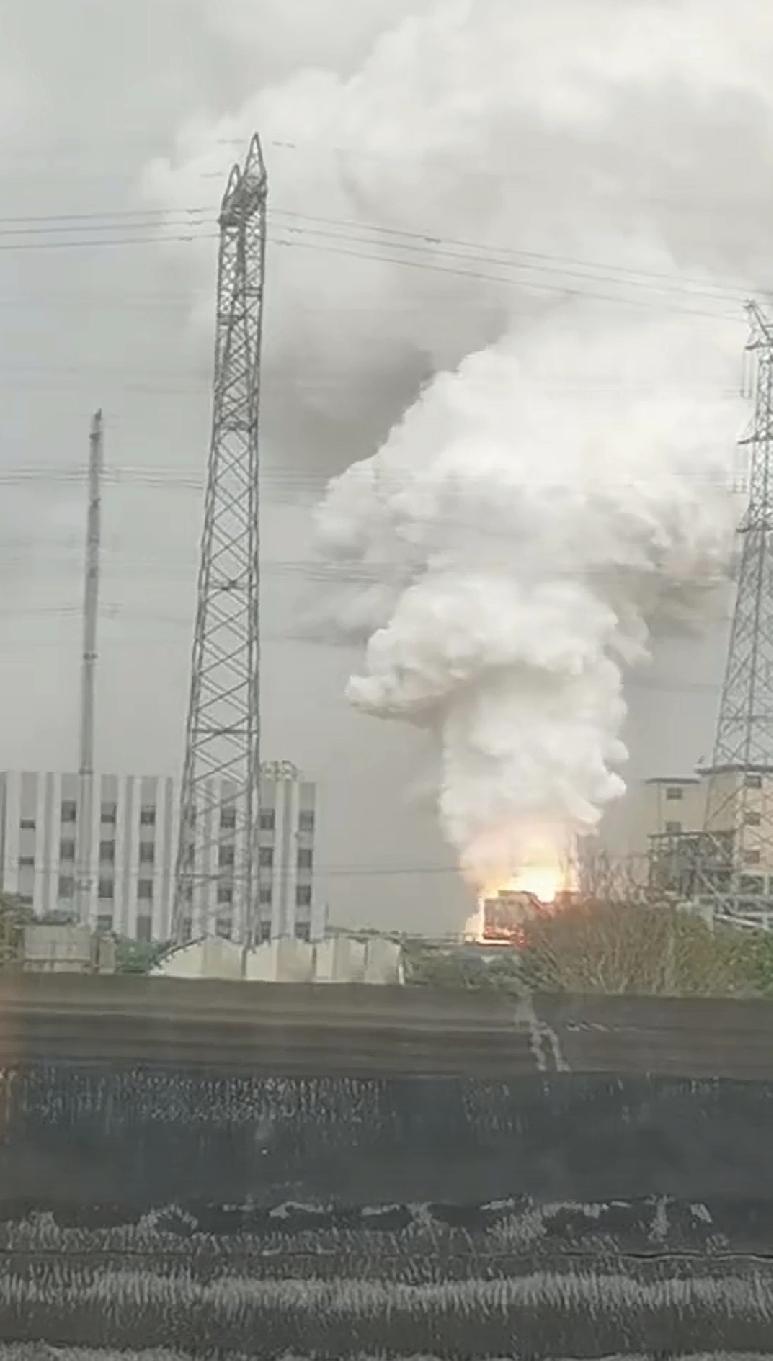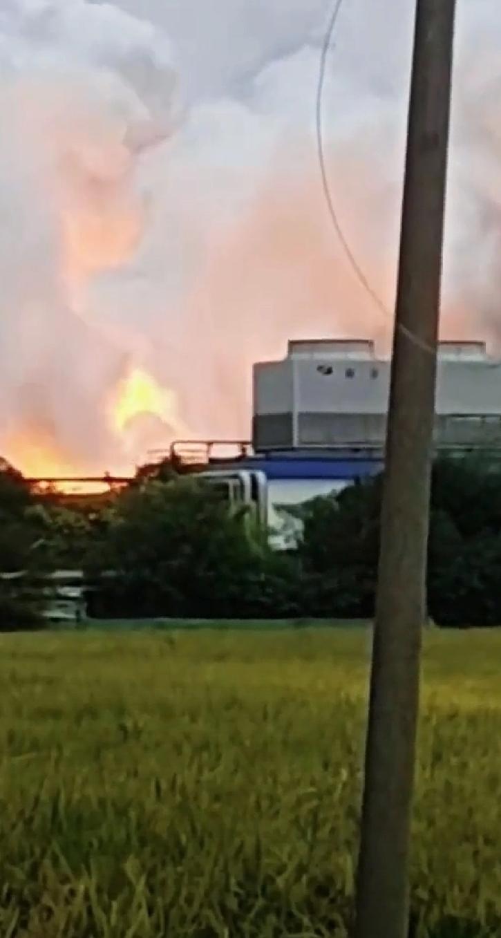 江阴一化工厂突发火灾,周围均被白色烟雾笼罩,事发江苏江阴。今天(10月20日)下