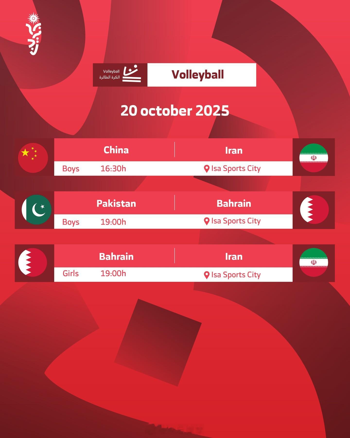 2025年亚洲青年运动会 排球比赛中国队今天的赛程:
