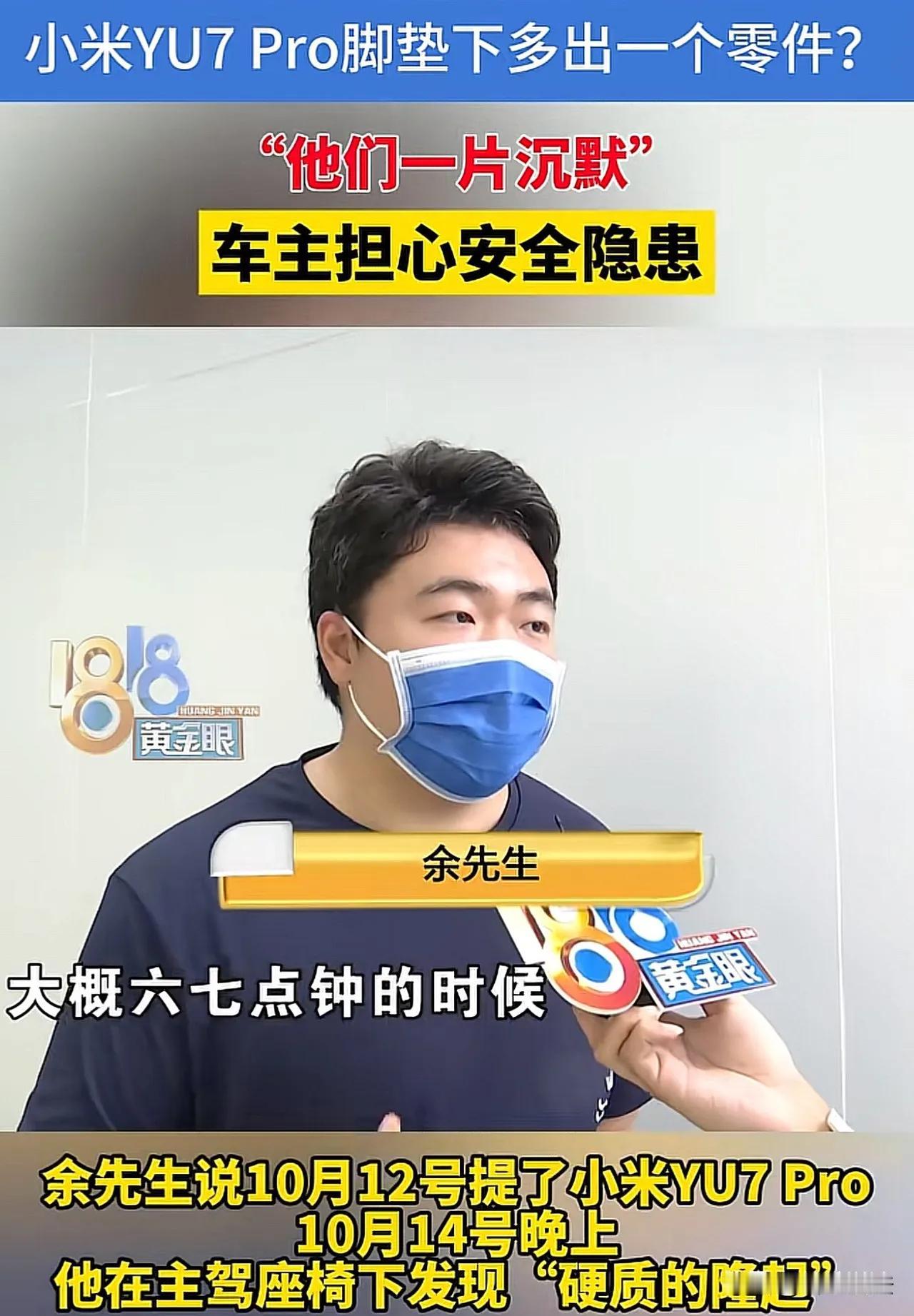 浙江杭州,余先生花30多万买了一辆小米SU7 PRO,可车子开回家才2天,就在车子内发现一个不知名零件。余先生懵了,车子的检查报告单显示车子各项功能都是正常,怎么就多出来个零件呢? 余先生联系到售后,希望给出个说法,为什么车子上会出现个不知名的零件,会不会有什么安全隐患?希望对方给出个说法。可对方只说是工厂的疏忽,对于余先生提出的其他疑问却未给任何说法。 于是,余先生找来媒体,帮自己讨要个说法。 小米相关工作人员文字回复记者,说门店给车子做了全面检查,各项功能正常,余先生要的纸质说明可以用工单备注的形式弄出来。 但余先生希望小米给个明确说法,别只说“功能正常”就完事,至少得让他知道这东西不会影响行车安全! 网友评论: 为何我们很多东西走不到世界,或者不长久,就是不注重小节,特别是质量问题,工匠精神的精髓已经在现代化的大潮中渐渐消失! 这种情况可能是工人在生产的时候忘在车上的,应该问题不大。但是作为厂家不应该出现这种情况,应该给客户一个交代。 还好是多出来个零件,如果少了你就不知道了!关键是这辆车如果是拆开后又组装的就要注意了!肯定是少装了某个件! 车主的担心显得有点多余,这车整个都是安全隐患! 车的结构还买明白就造车了,还是油车靠谱,油车安全放心。 生产环节失误致零件遗落,厂家生产管理有问题应担责买车送配件是好事呀。